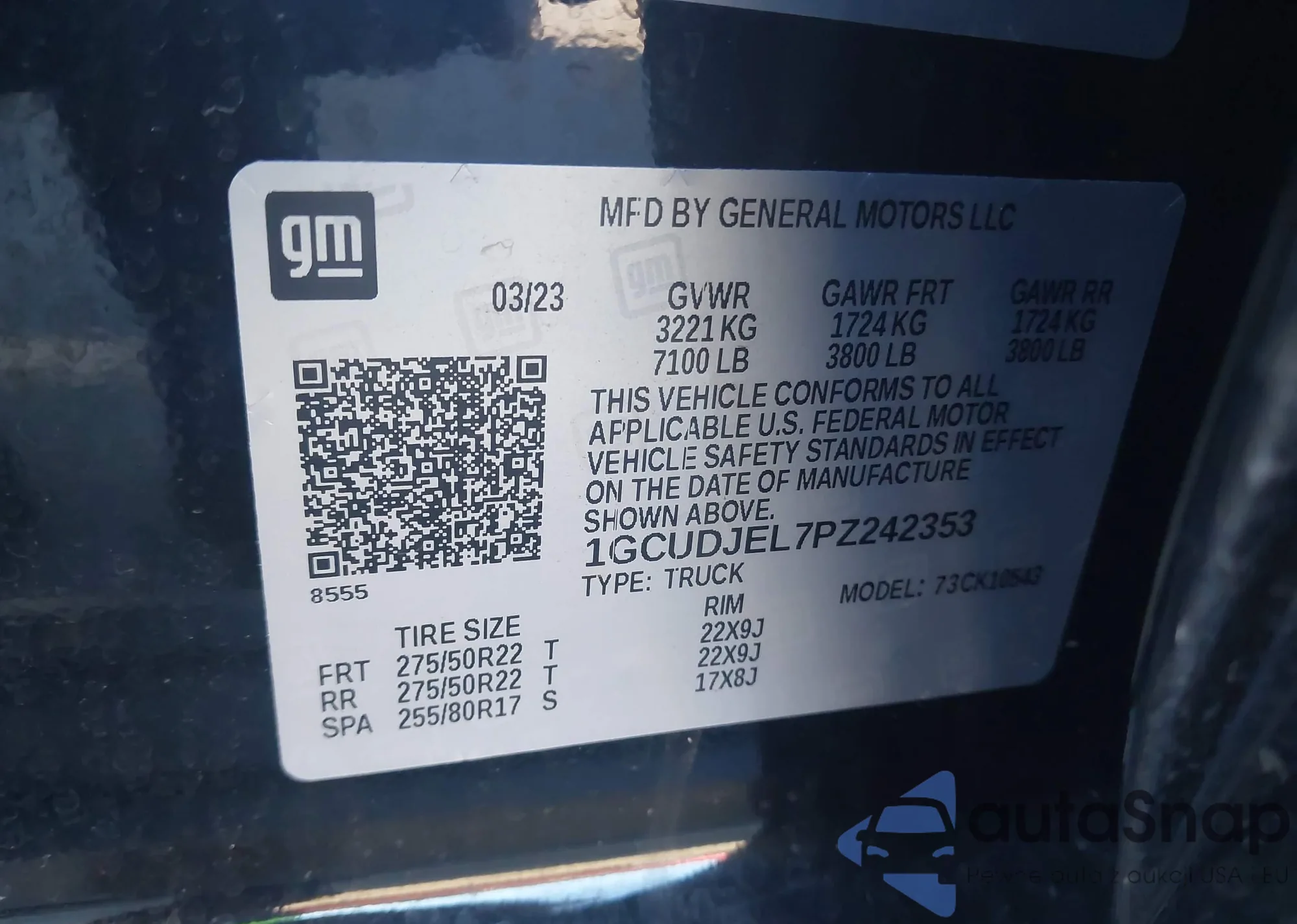 • VIN: 1GCUDJEL7PZ242353