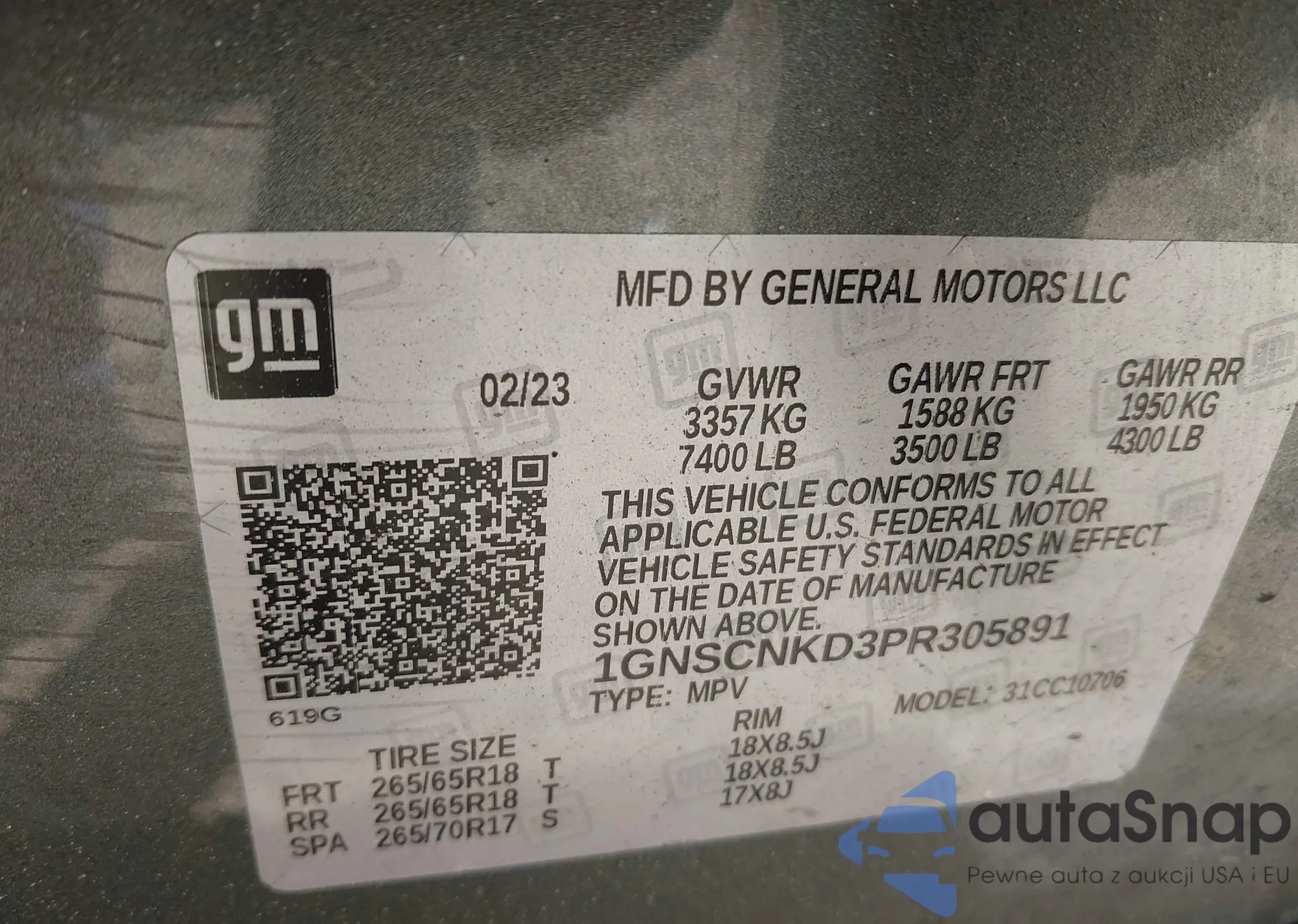 VIN: 1GNSCNKD3PR305891