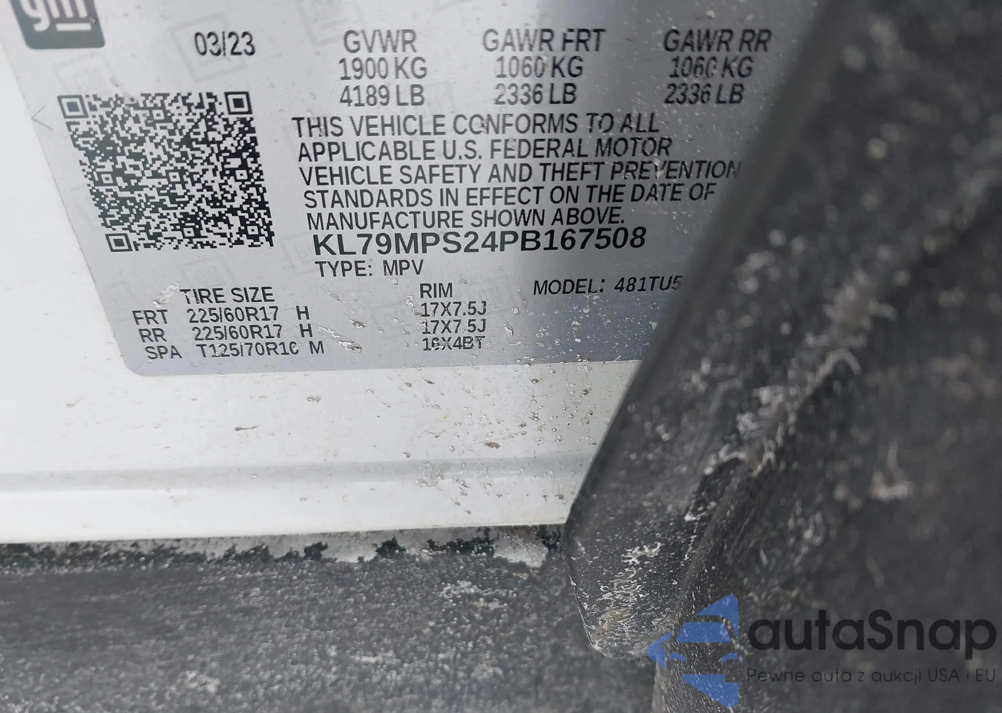 • VIN: KL79MPS24PB167508
