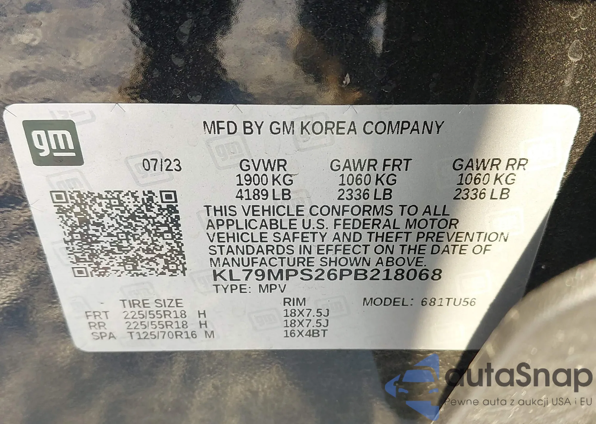 Samochód Chevrolet TrailBlazer 2023 (VIN KL79MPS26PB218068) nie był wcześniej licytowany. Dokumenty są czyste, przebieg odpowiada lub jest niższy niż średnia rynku. Sprzedaje go firma ubezpieczeniowa – polecamy zakup. Dostawa do portu zajmie ok. 6–8 tygodni.