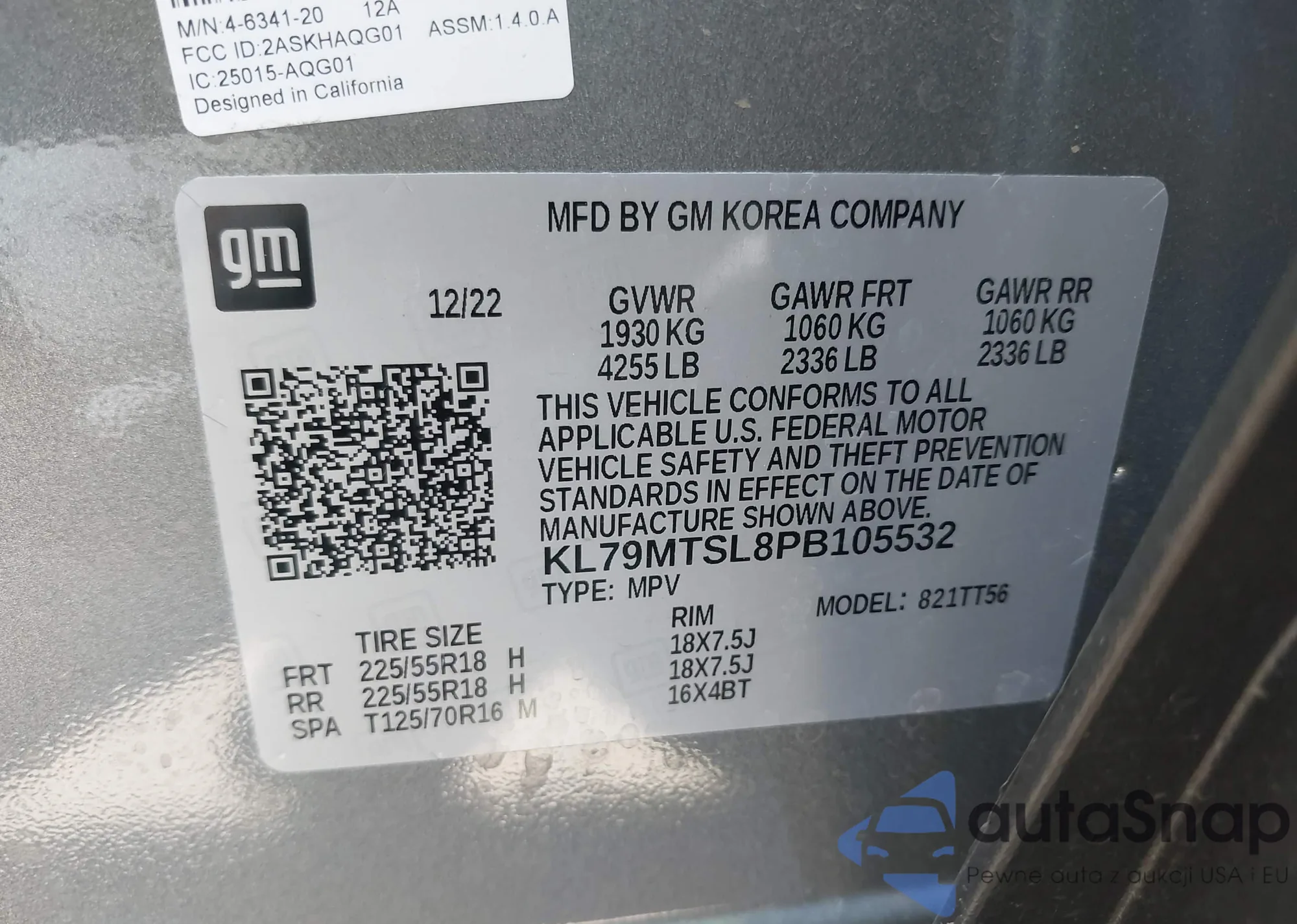 VIN: KL79MTSL8PB105532