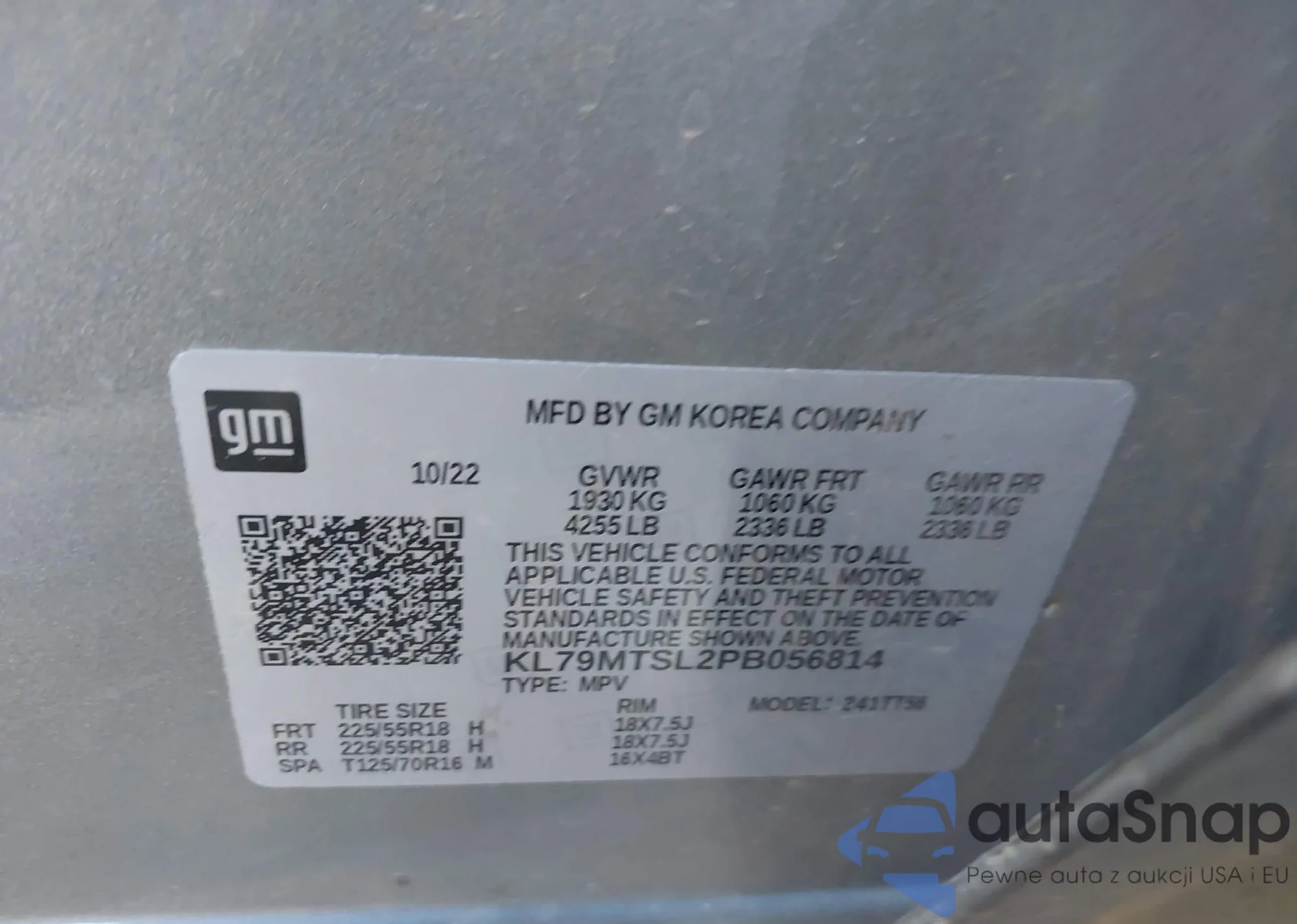 Samochód Chevrolet TrailBlazer 2023 (VIN KL79MTSL2PB056814) nie był wcześniej licytowany. Dokumenty są czyste, przebieg odpowiada lub jest niższy niż średnia rynku. Sprzedaje go firma ubezpieczeniowa – polecamy zakup. Dostawa do portu zajmie ok. 6–8 tygodni.