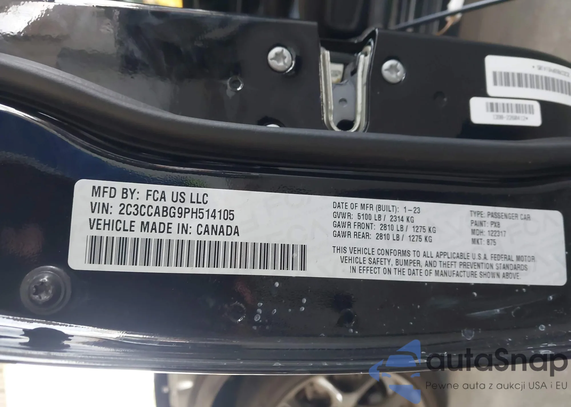 Samochód Chrysler 300 2023 (VIN 2C3CCABG9PH514105) ma dokumenty uniemożliwiające rejestrację. Mogą pojawić się trudności przy eksporcie i rejestracji. Skontaktuj się z ekspertami AutaSnap w celu znalezienia alternatywy.