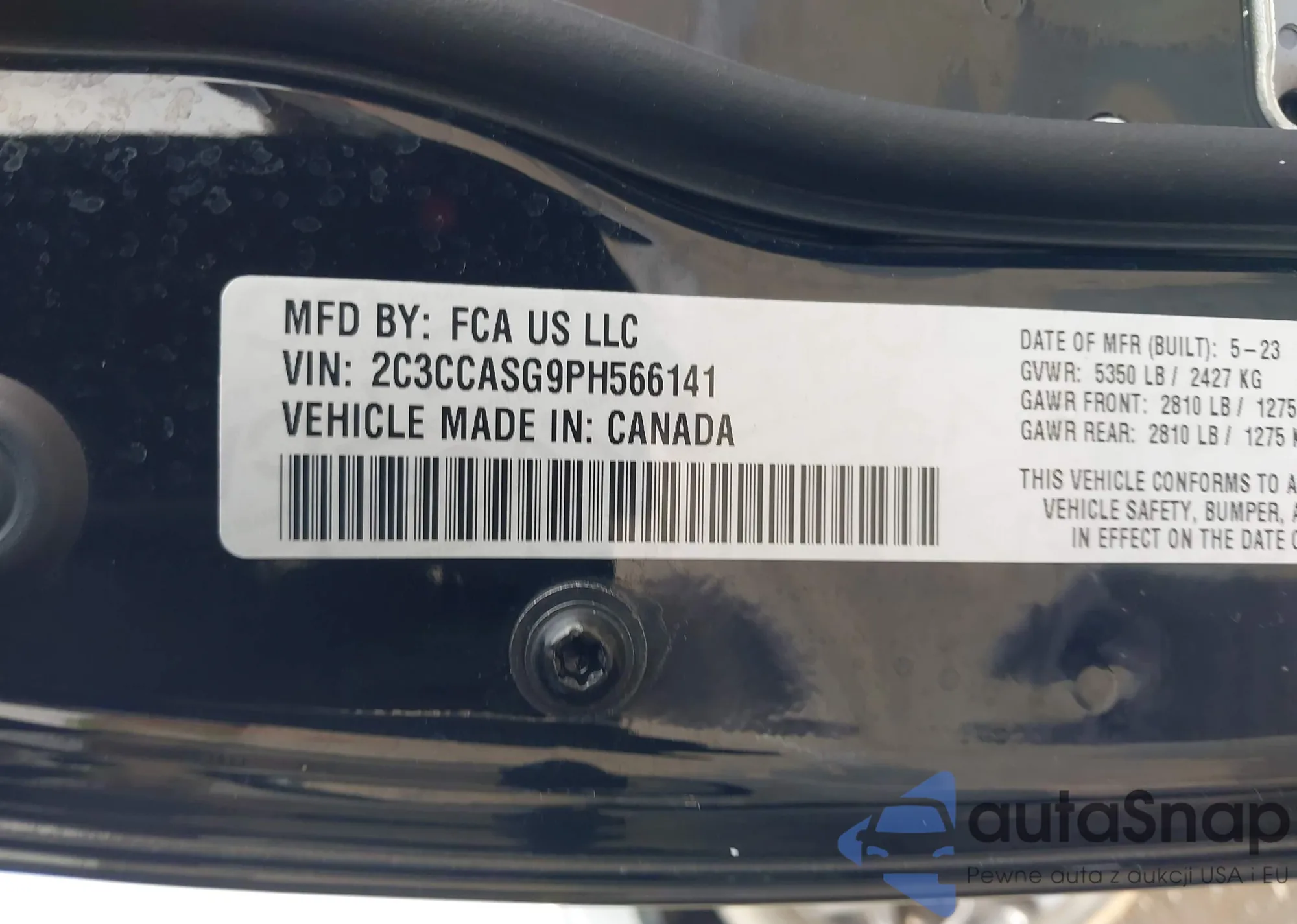 Samochód Chrysler 300 2023 (VIN 2C3CCASG9PH566141) nie był wcześniej licytowany. Dokumenty są czyste, przebieg odpowiada lub jest niższy niż średnia rynku. Sprzedaje go firma ubezpieczeniowa – polecamy zakup. Dostawa do portu zajmie ok. 6–8 tygodni.