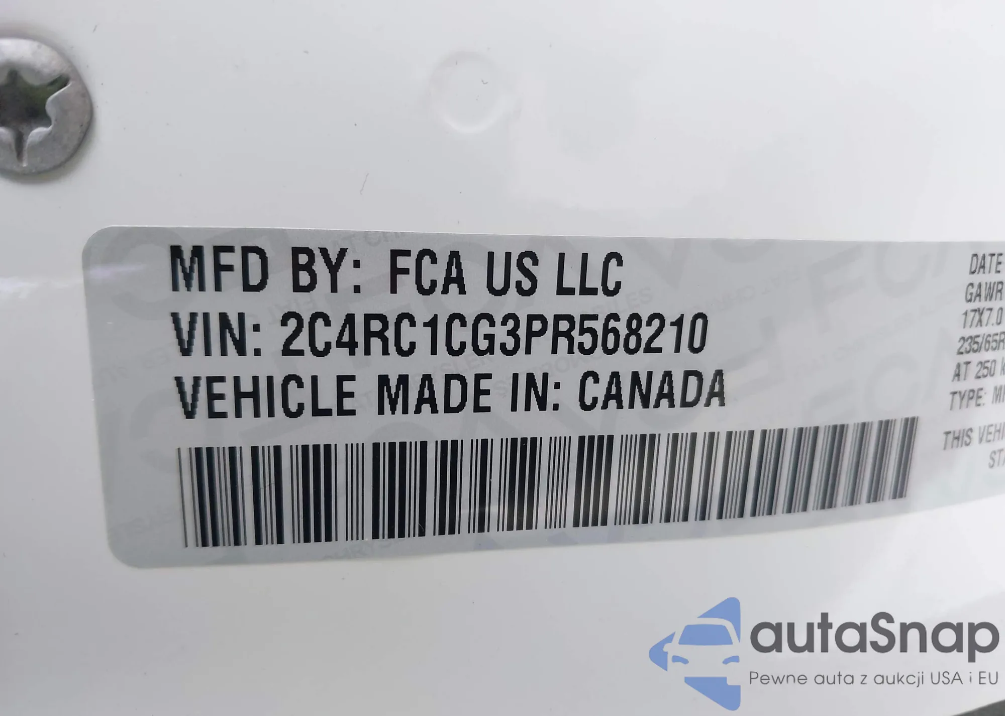VIN: 2C4RC1CG3PR568210