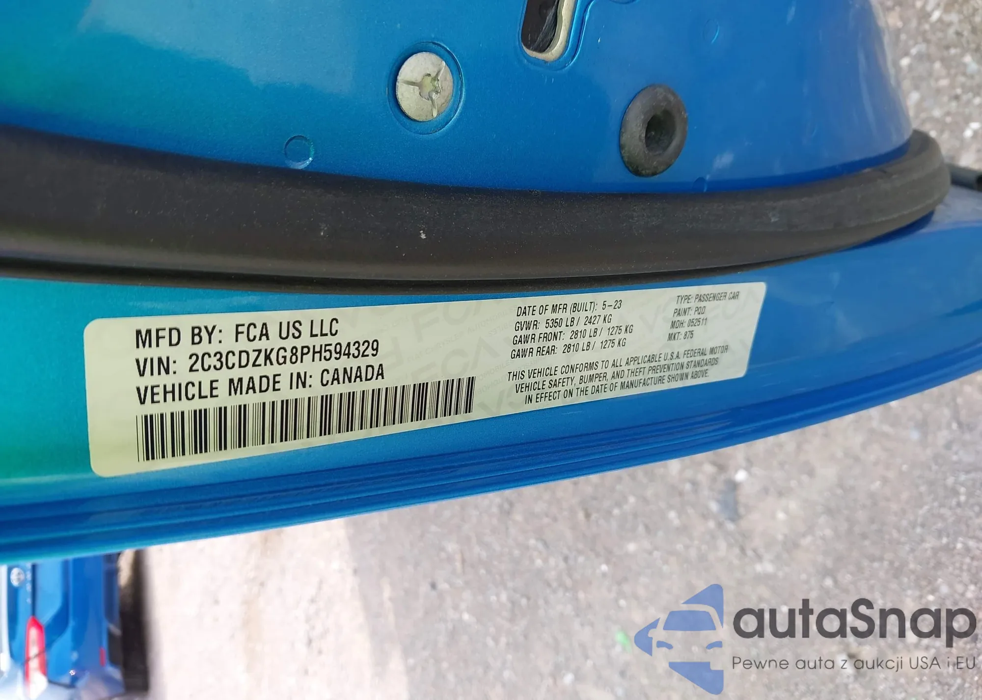 VIN: 2C3CDZKG8PH594329