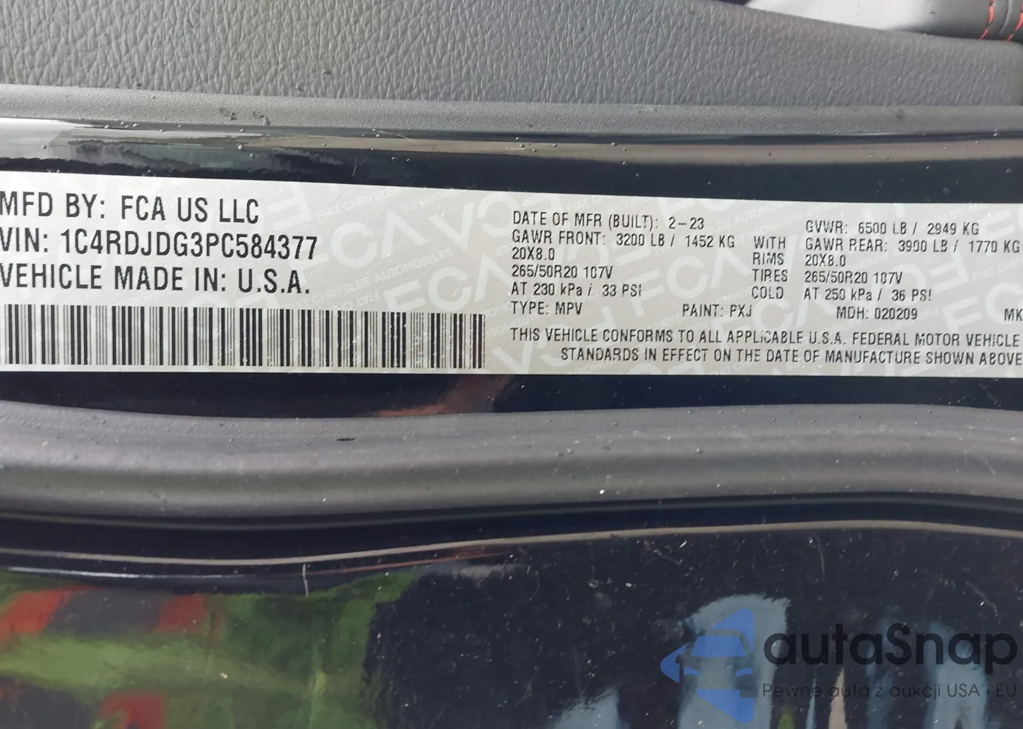 VIN: 1C4RDJDG3PC584377