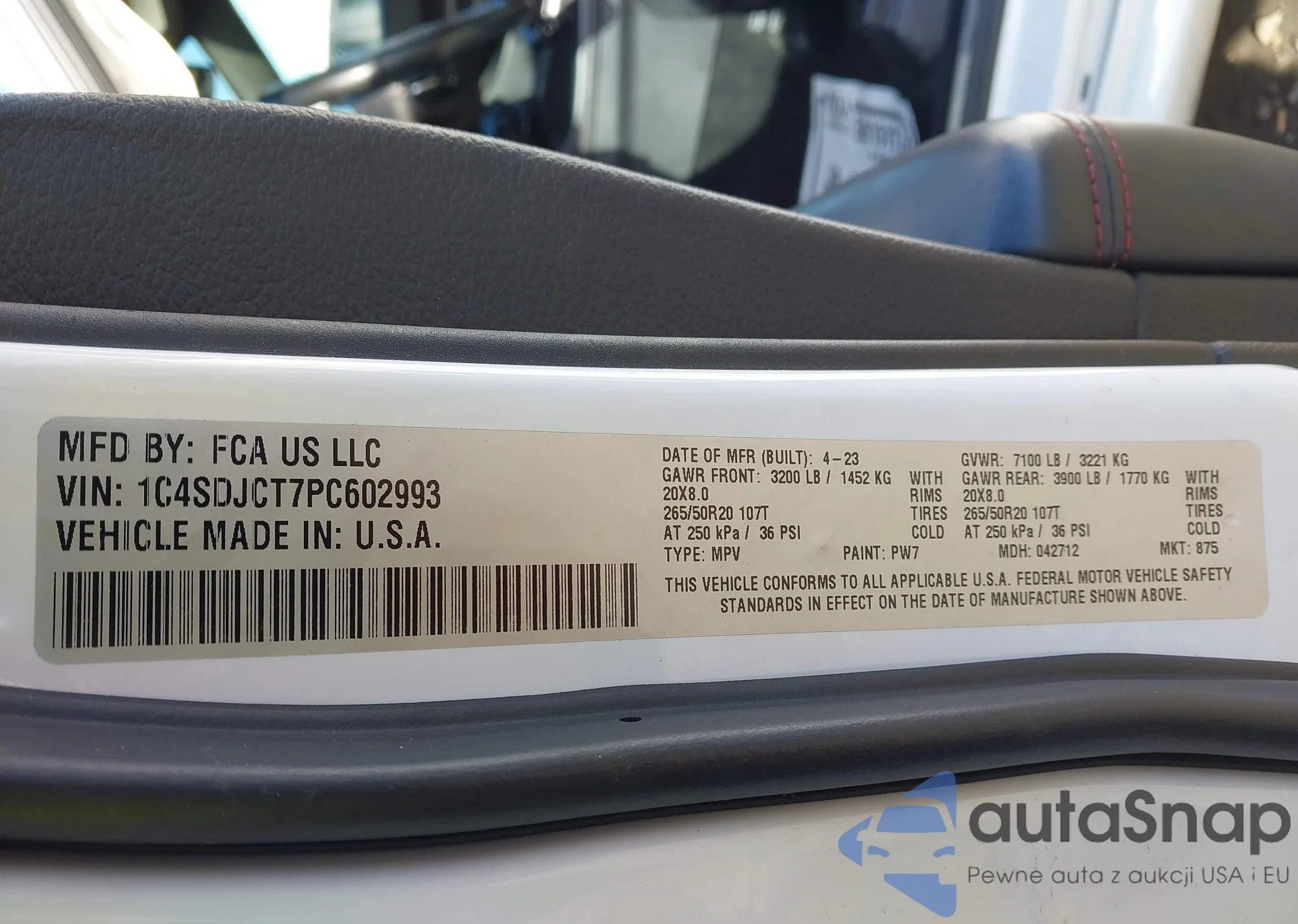 Samochód Dodge Durango 2023 (VIN 1C4SDJCT7PC602993) nie był wcześniej licytowany. Dokumenty są czyste, przebieg odpowiada lub jest niższy niż średnia rynku. Sprzedaje go firma ubezpieczeniowa – polecamy zakup. Dostawa do portu zajmie ok. 6–8 tygodni.
