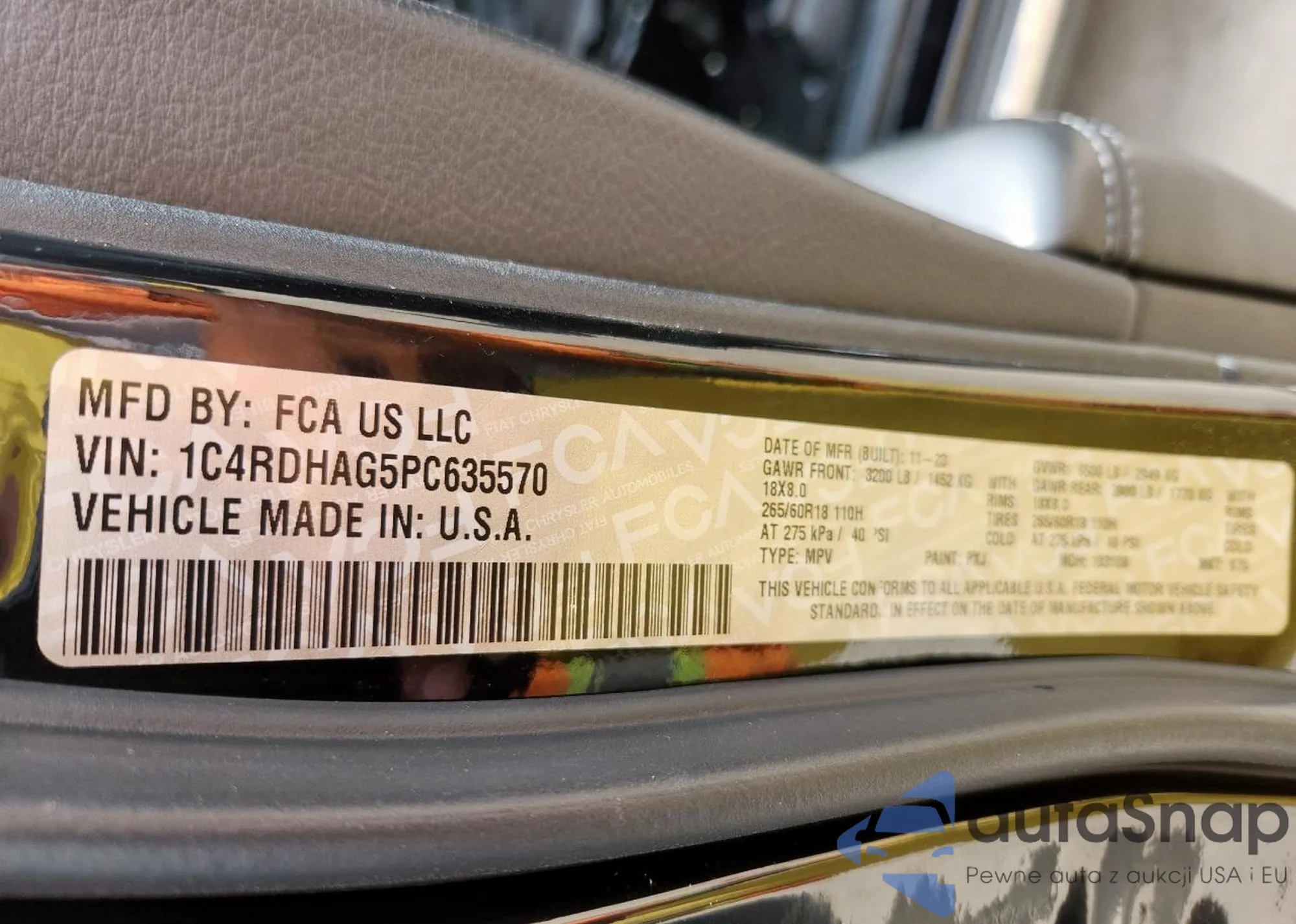 VIN: 1C4RDHAG5PC635570