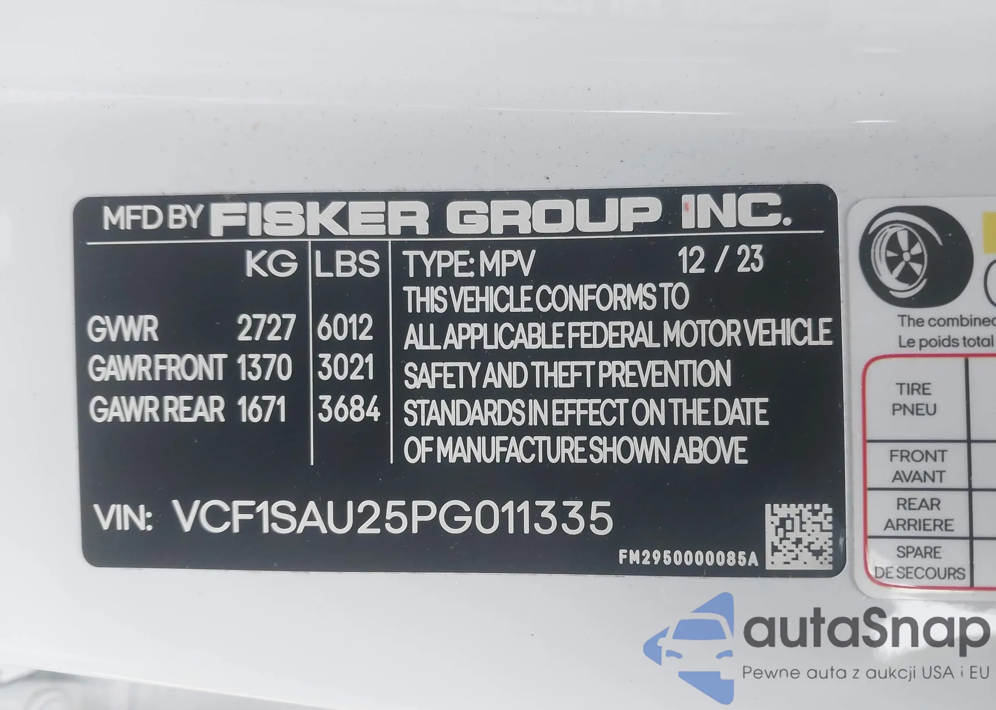 • VIN: VCF1SAU25PG011335