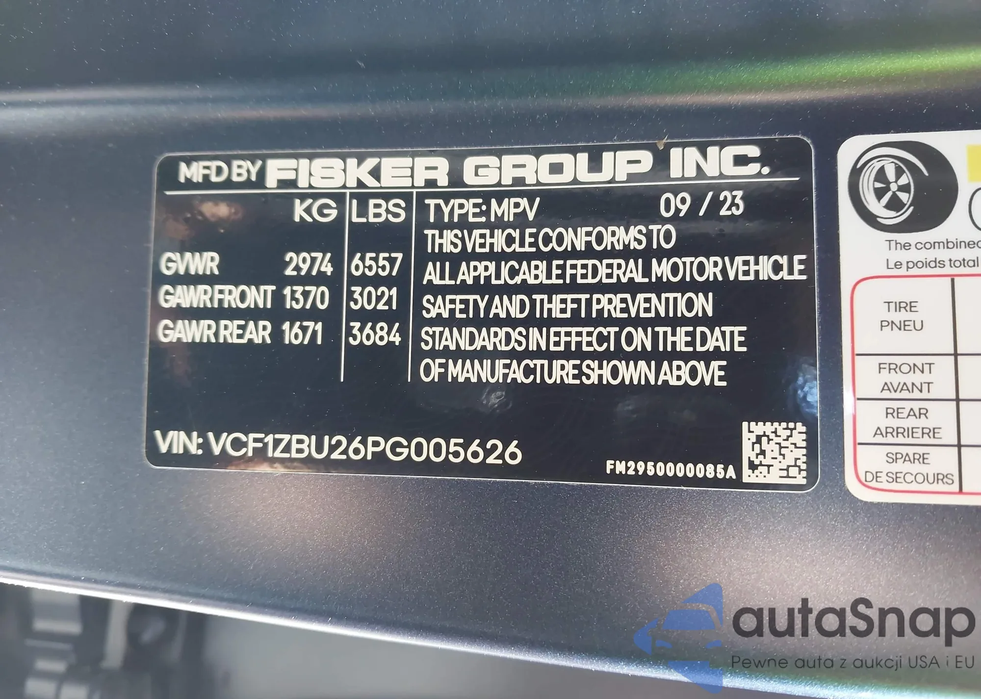 • VIN: VCF1ZBU26PG005626