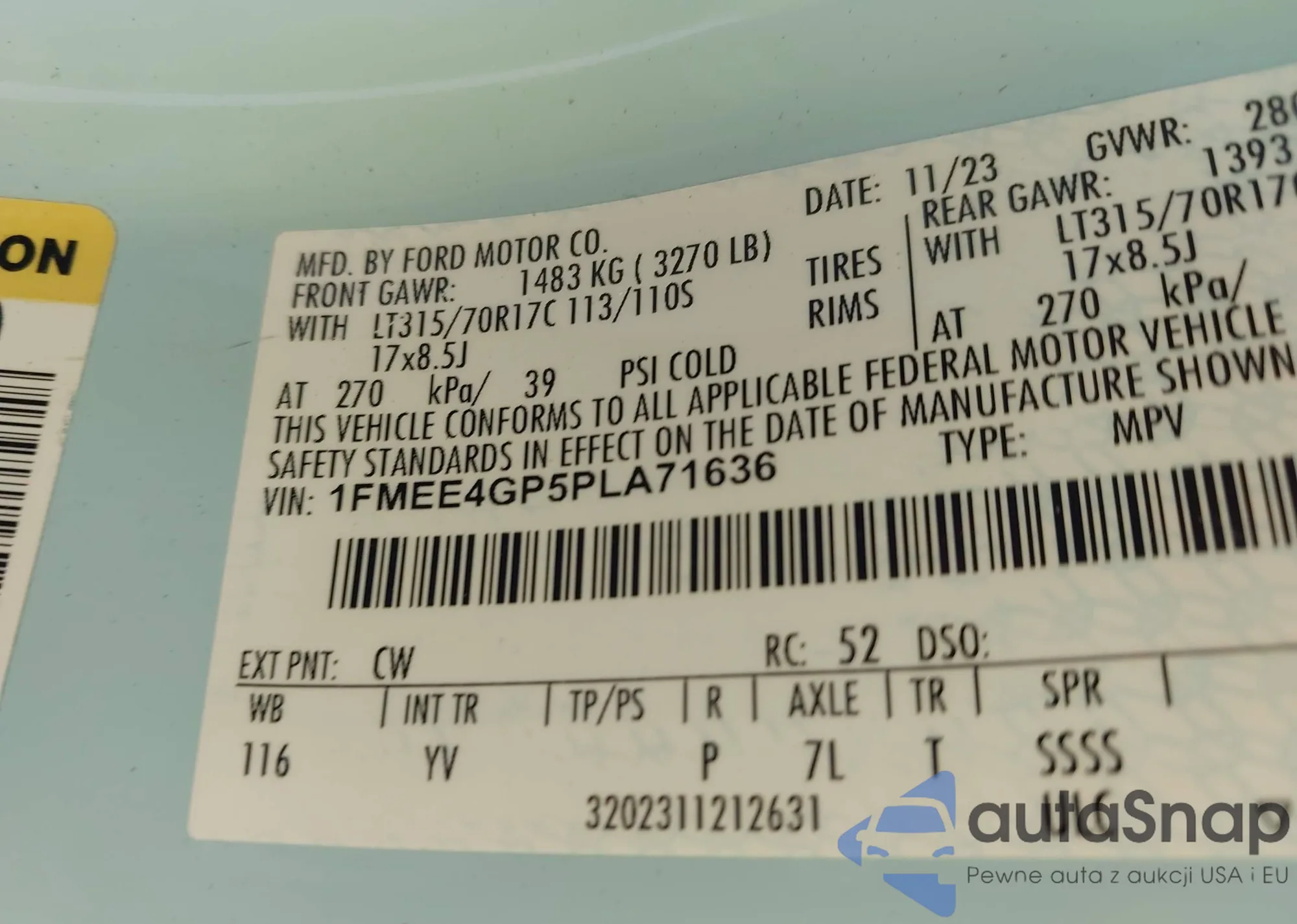 • VIN: 1FMEE4GP5PLA71636