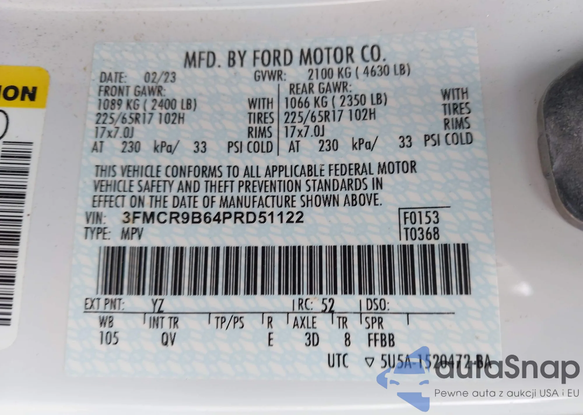 • VIN: 3FMCR9B64PRD51122