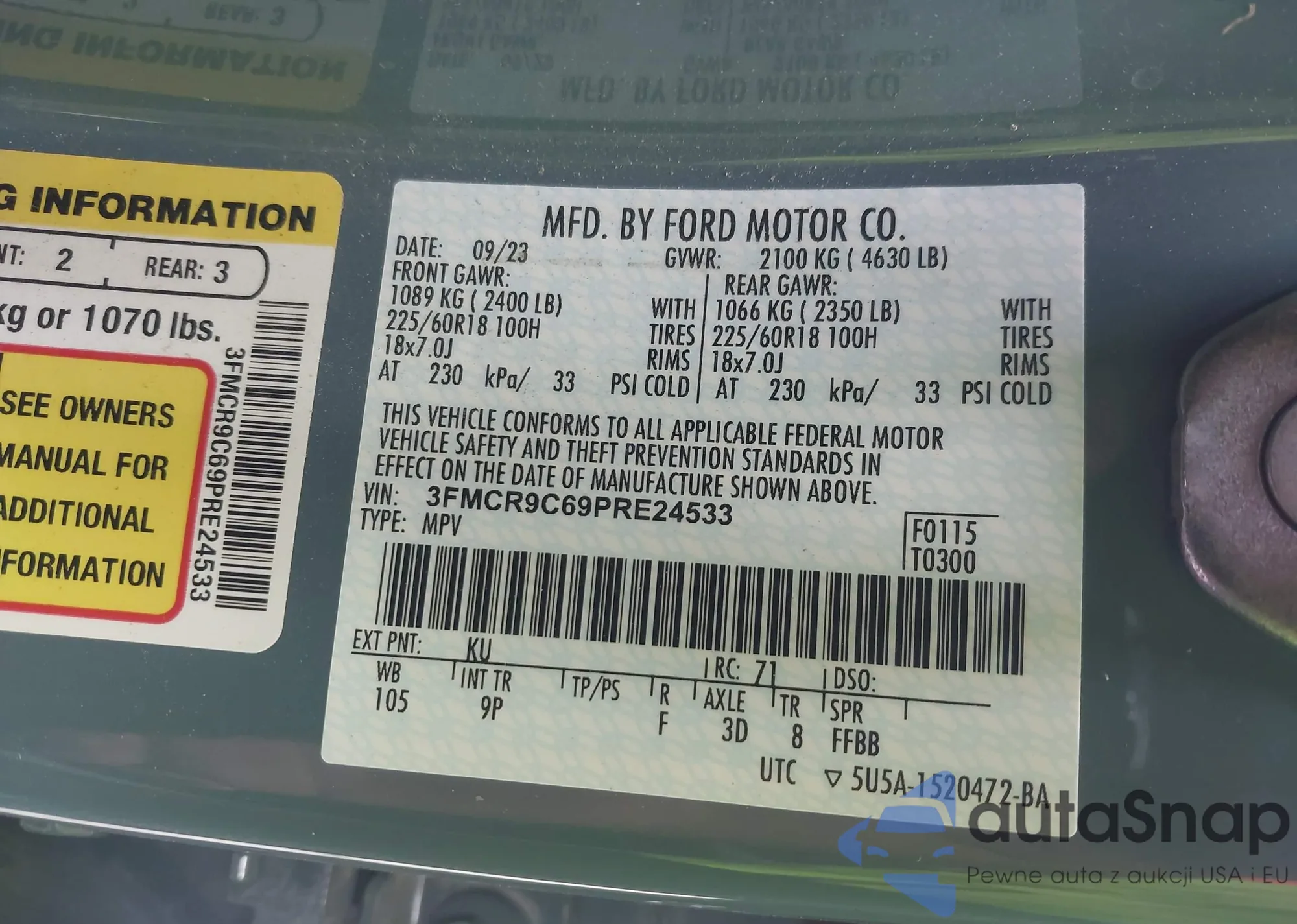 VIN: 3FMCR9C69PRE24533