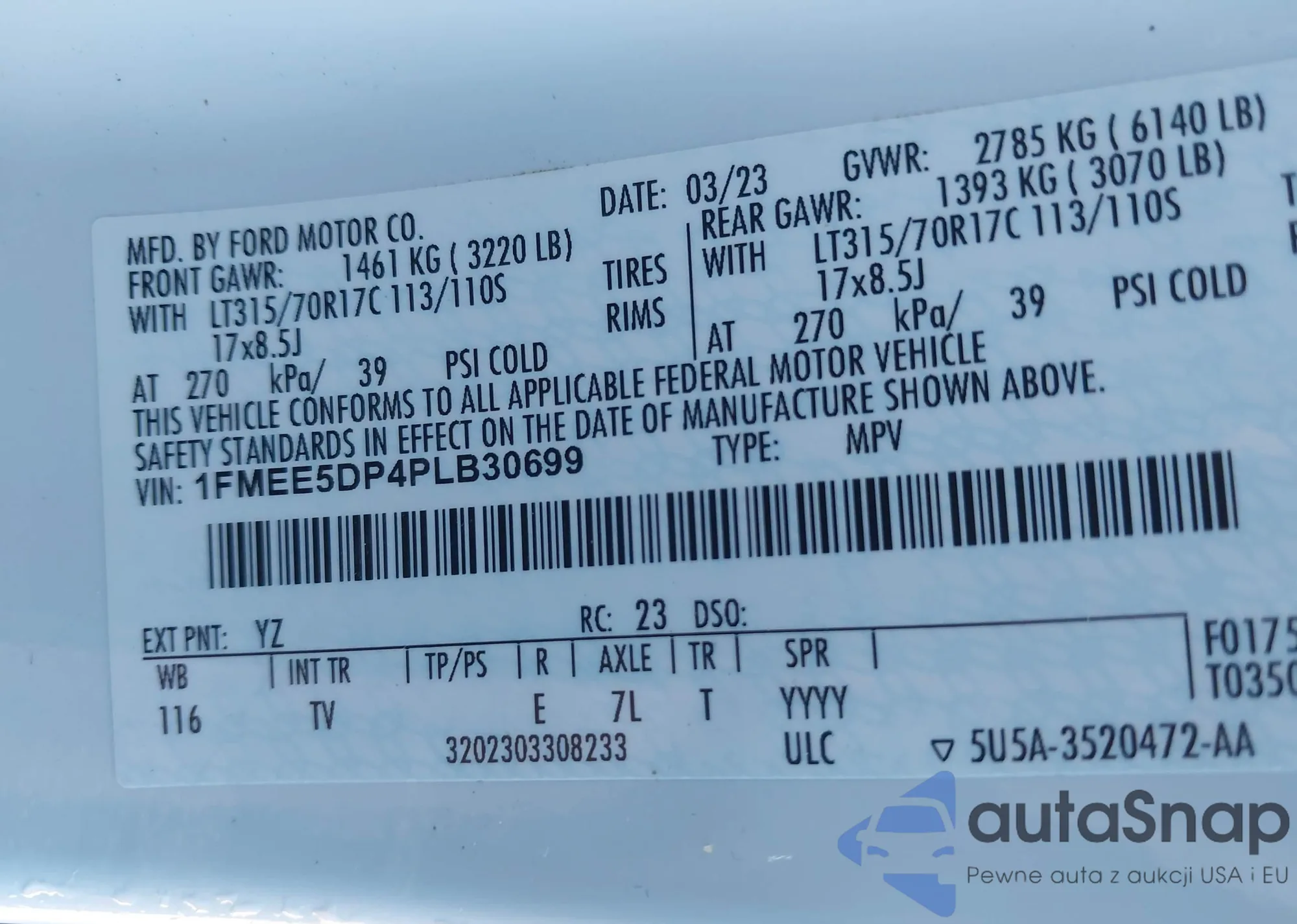Samochód Ford Bronco 2023 (VIN 1FMEE5DP4PLB30699) nie był wcześniej licytowany. Dokumenty są czyste, przebieg odpowiada lub jest niższy niż średnia rynku. Sprzedaje go firma ubezpieczeniowa – polecamy zakup. Dostawa do portu zajmie ok. 6–8 tygodni.