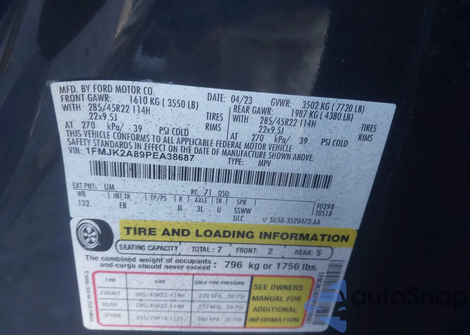 • VIN: 1FMJK2A89PEA38687