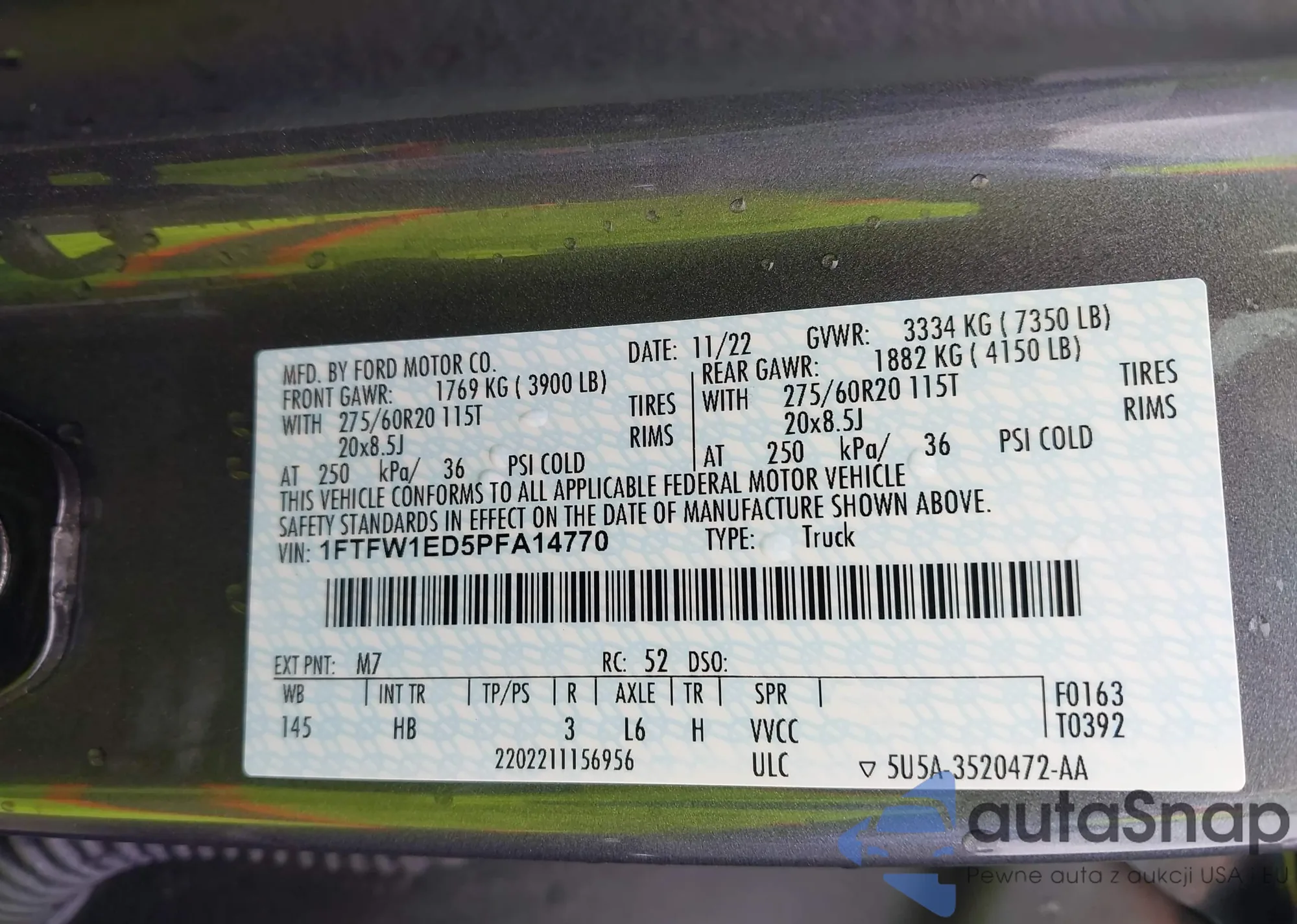 VIN: 1FTFW1ED5PFA14770