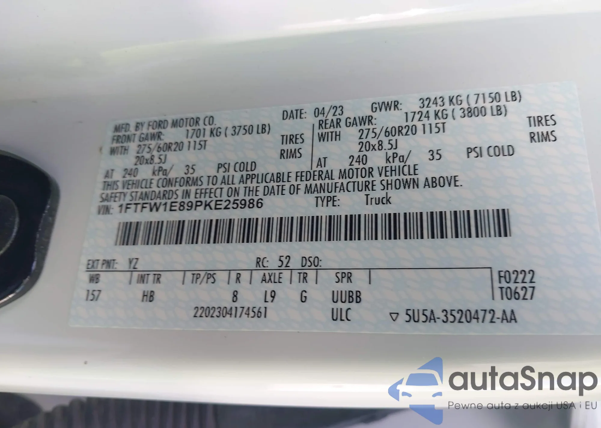 VIN: 1FTFW1E89PKE25986