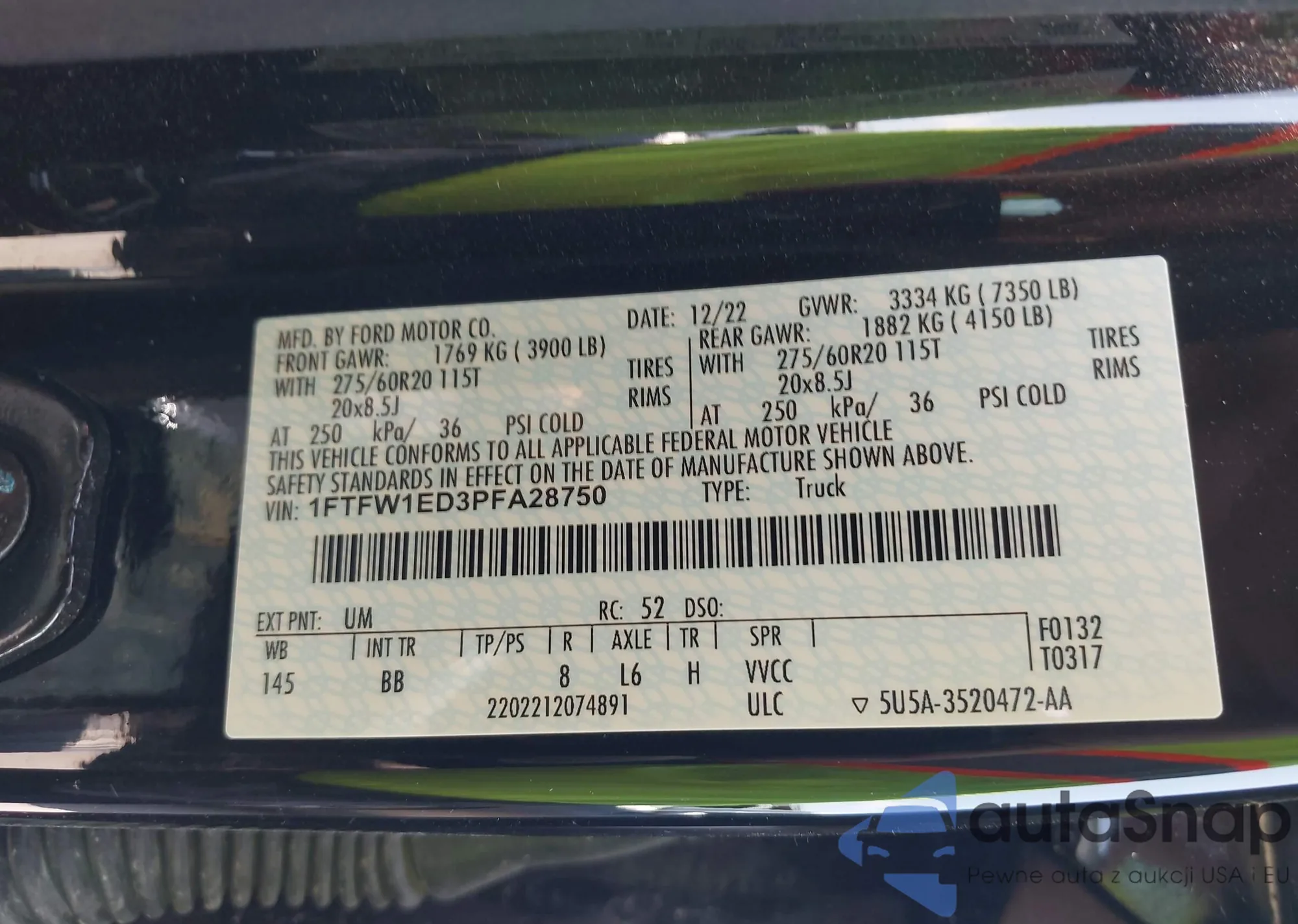 VIN: 1FTFW1ED3PFA28750