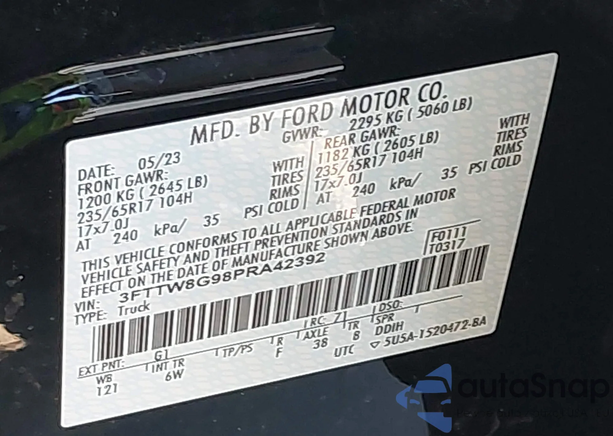 VIN: 3FTTW8G98PRA42392
