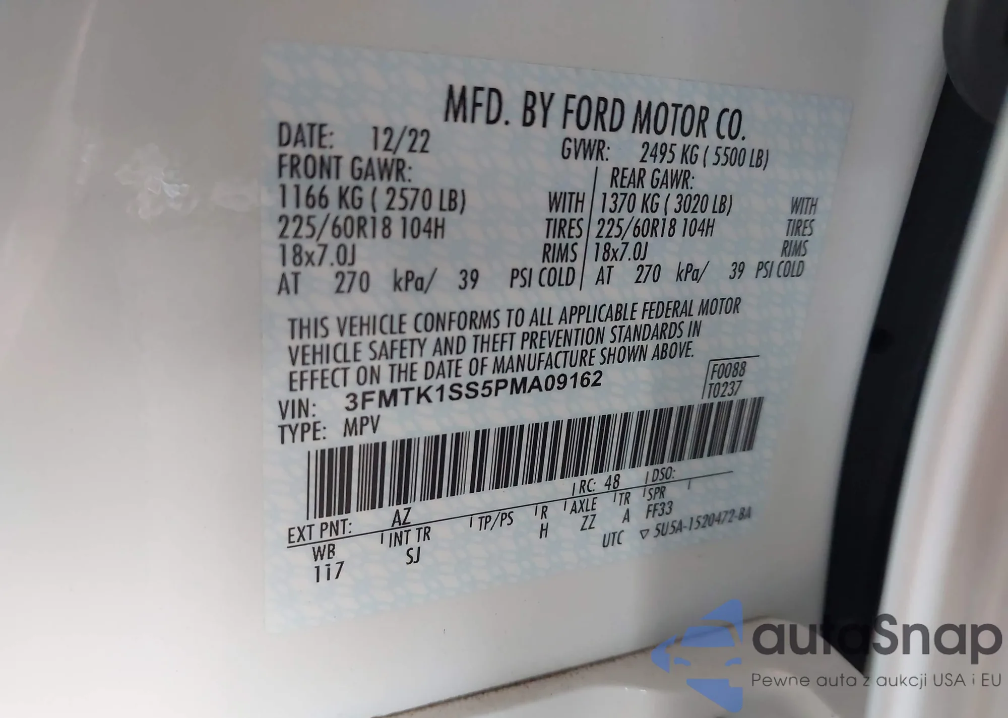 VIN: 3FMTK1SS5PMA09162