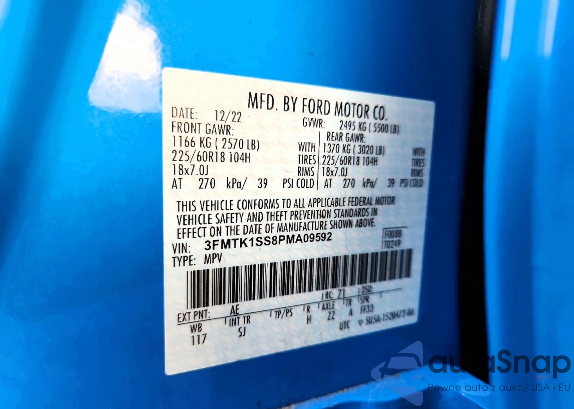 Samochód Ford Mustang Mach-E 2023 (VIN 3FMTK1SS8PMA09592) nie był wcześniej licytowany. Dokumenty są czyste, przebieg odpowiada lub jest niższy niż średnia rynku. Sprzedaje go firma ubezpieczeniowa – polecamy zakup. Dostawa do portu zajmie ok. 6–8 tygodni.