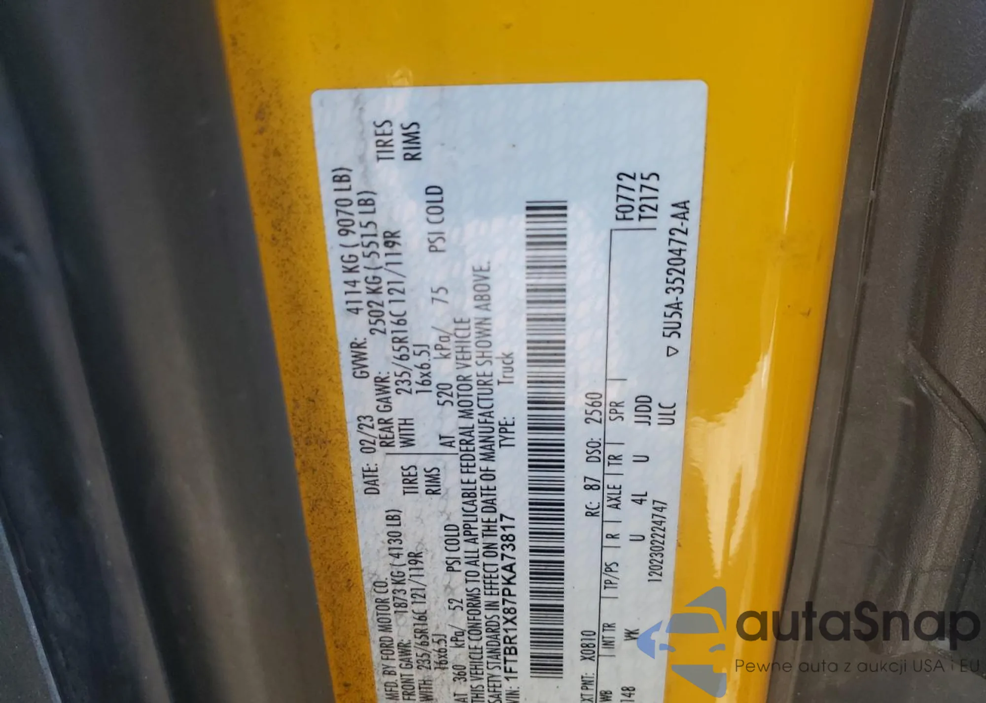 • VIN: 1FTBR1X87PKA73817