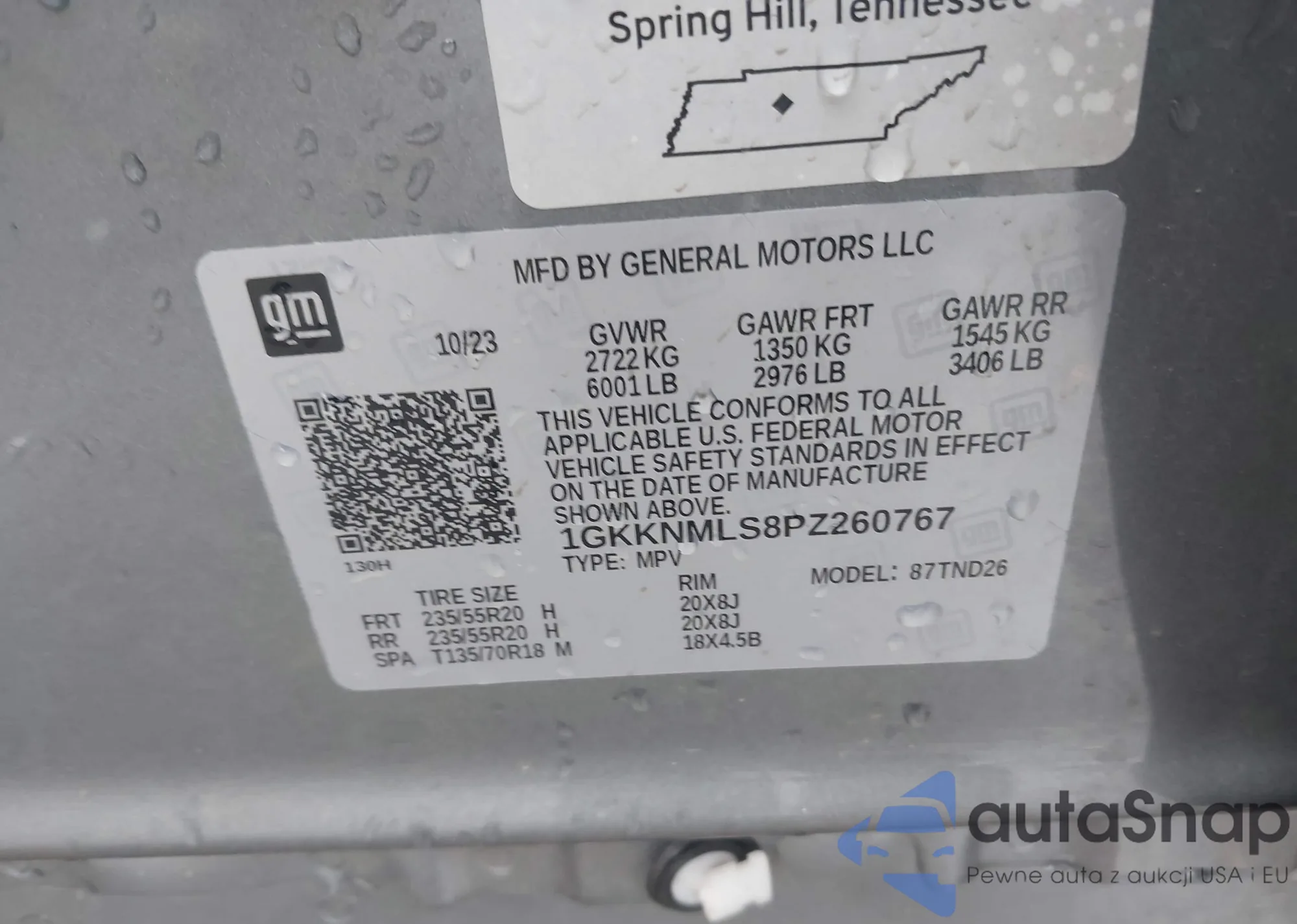 Samochód GMC Acadia 2023 (VIN 1GKKNMLS8PZ260767) nie był wcześniej licytowany. Dokumenty są czyste, przebieg odpowiada lub jest niższy niż średnia rynku. Sprzedaje go firma ubezpieczeniowa – polecamy zakup. Dostawa do portu zajmie ok. 6–8 tygodni.