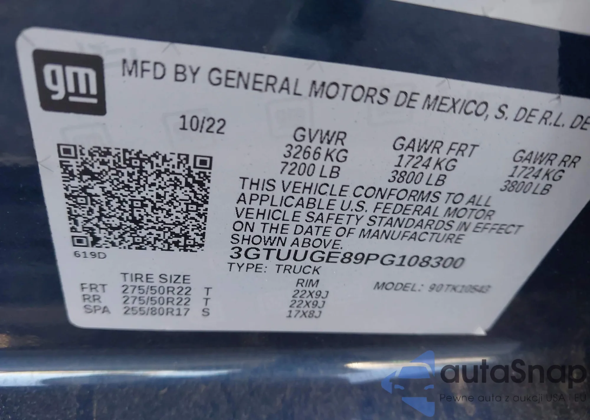 VIN: 3GTUUGE89PG108300