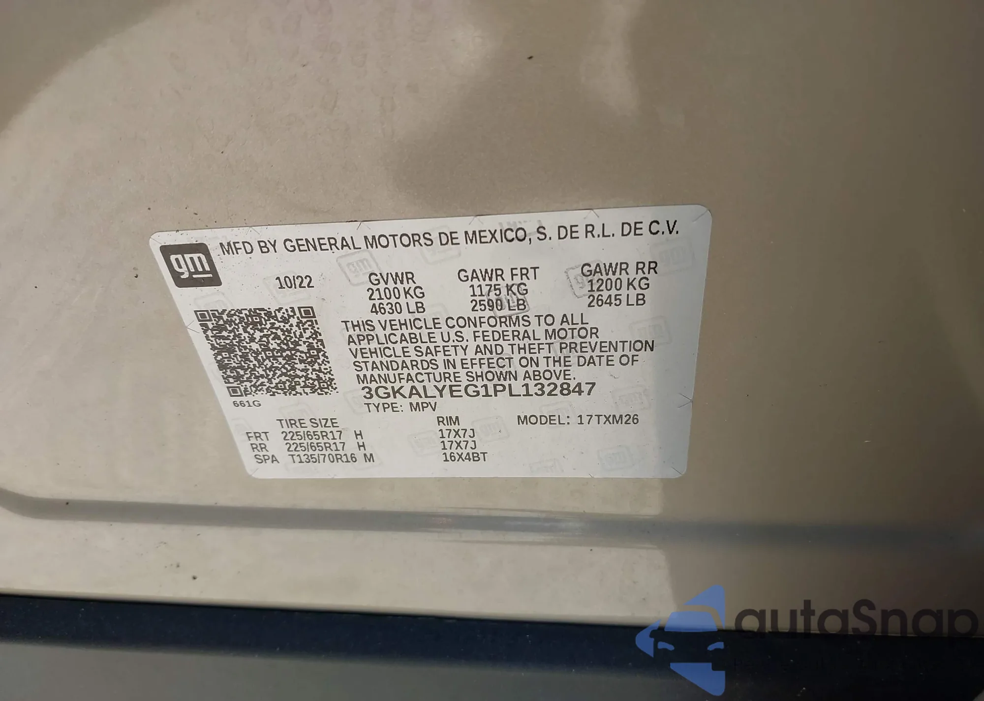 VIN: 3GKALYEG1PL132847