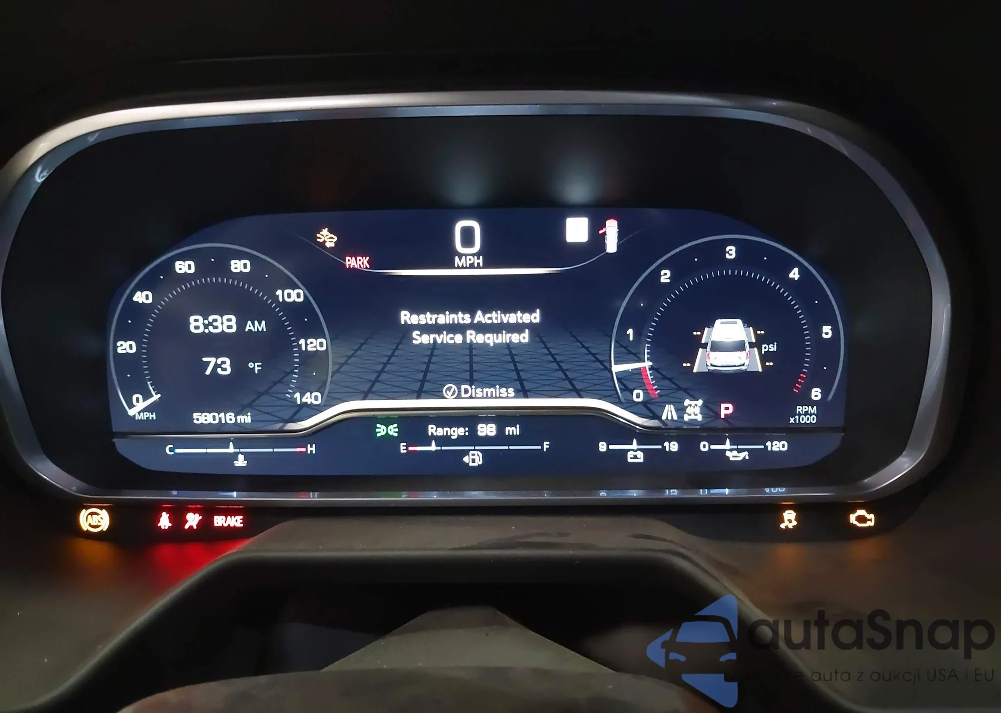 • Stan poduszek bezpieczeństwa: Aktywowane
