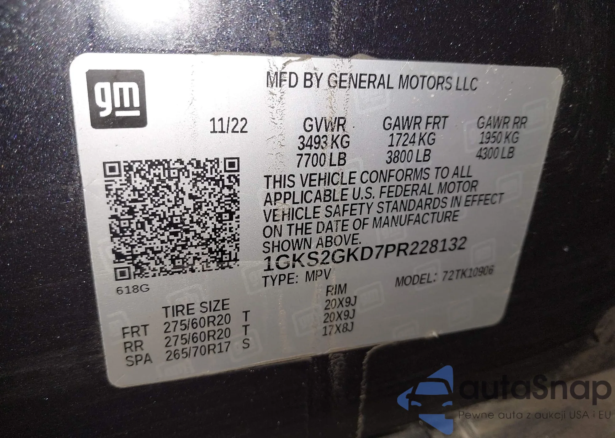 Samochód GMC Yukon 2023 (VIN 1GKS2GKD7PR228132) nie był wcześniej licytowany. Dokumenty są czyste, przebieg odpowiada lub jest niższy niż średnia rynku. Sprzedaje go firma ubezpieczeniowa – polecamy zakup. Dostawa do portu zajmie ok. 6–8 tygodni.