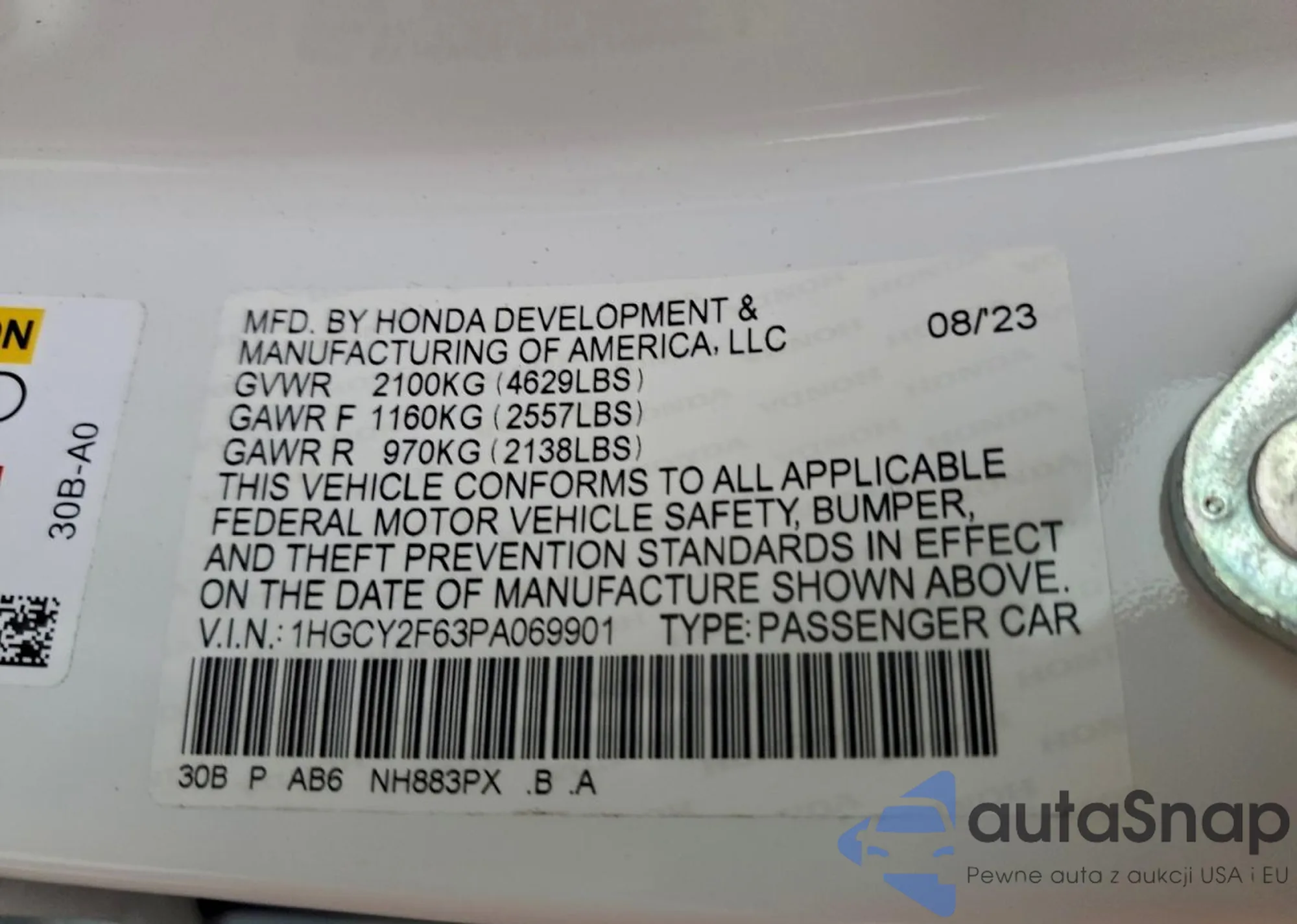 VIN: 1HGCY2F63PA069901