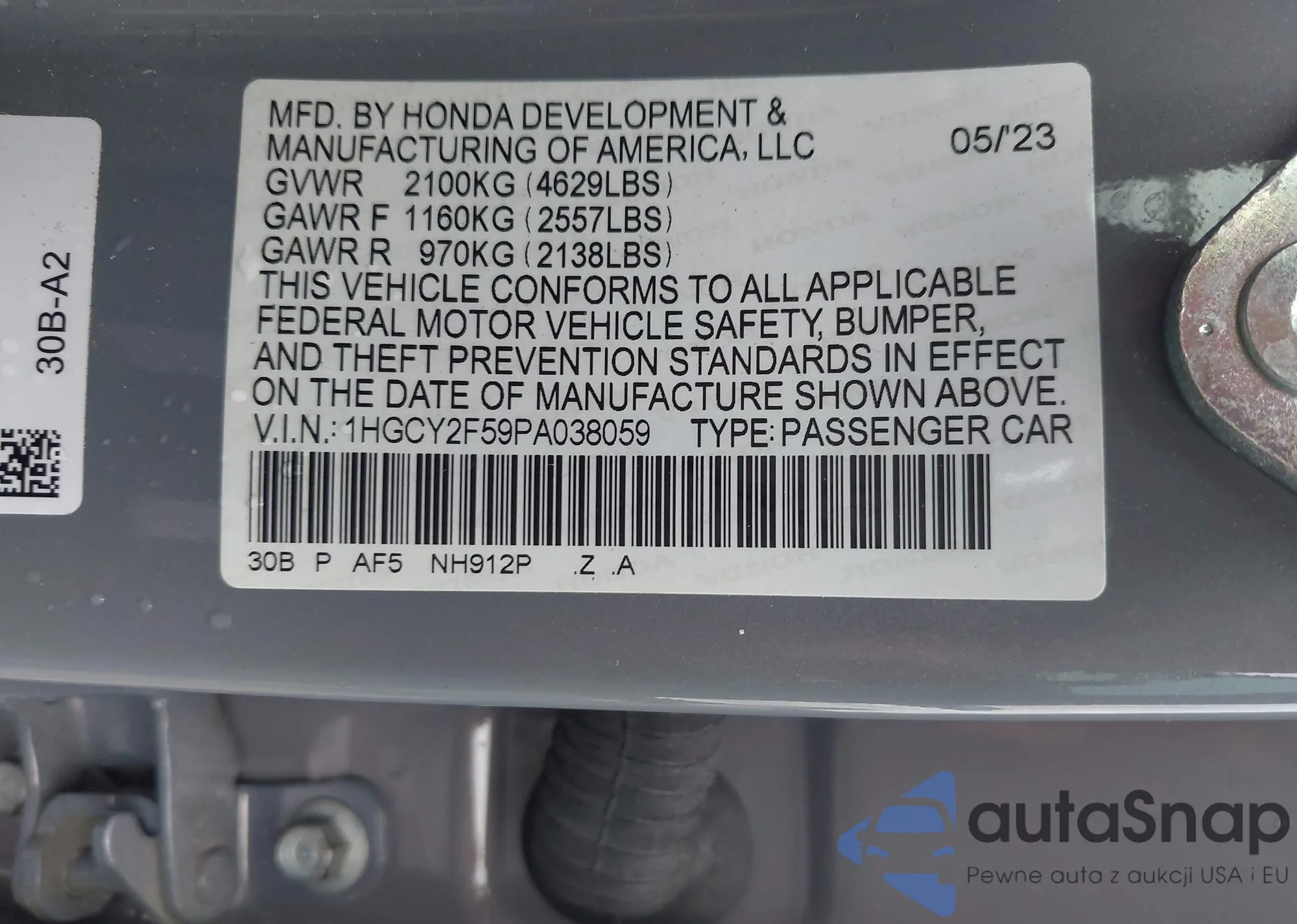 VIN: 1HGCY2F59PA038059