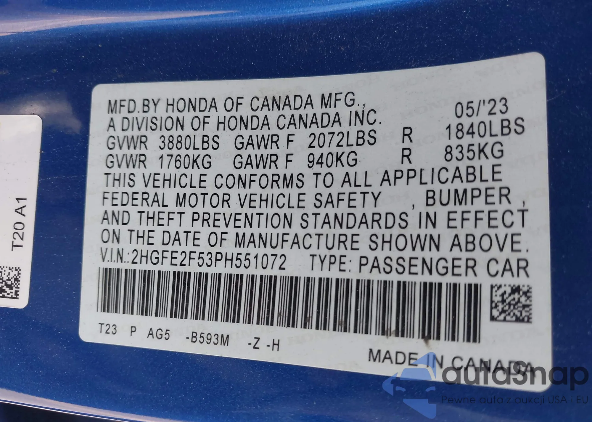 VIN: 2HGFE2F53PH551072