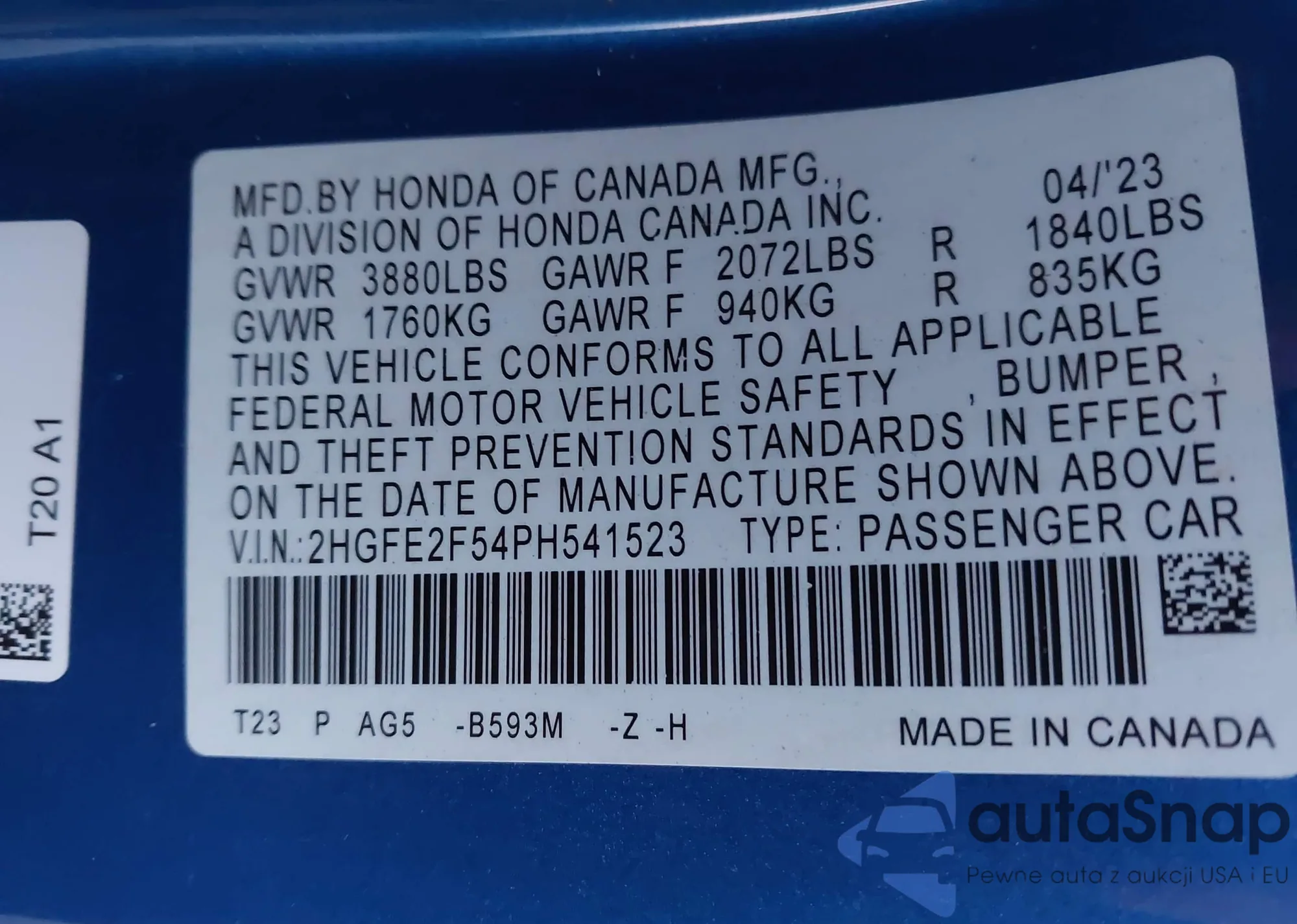 VIN: 2HGFE2F54PH541523