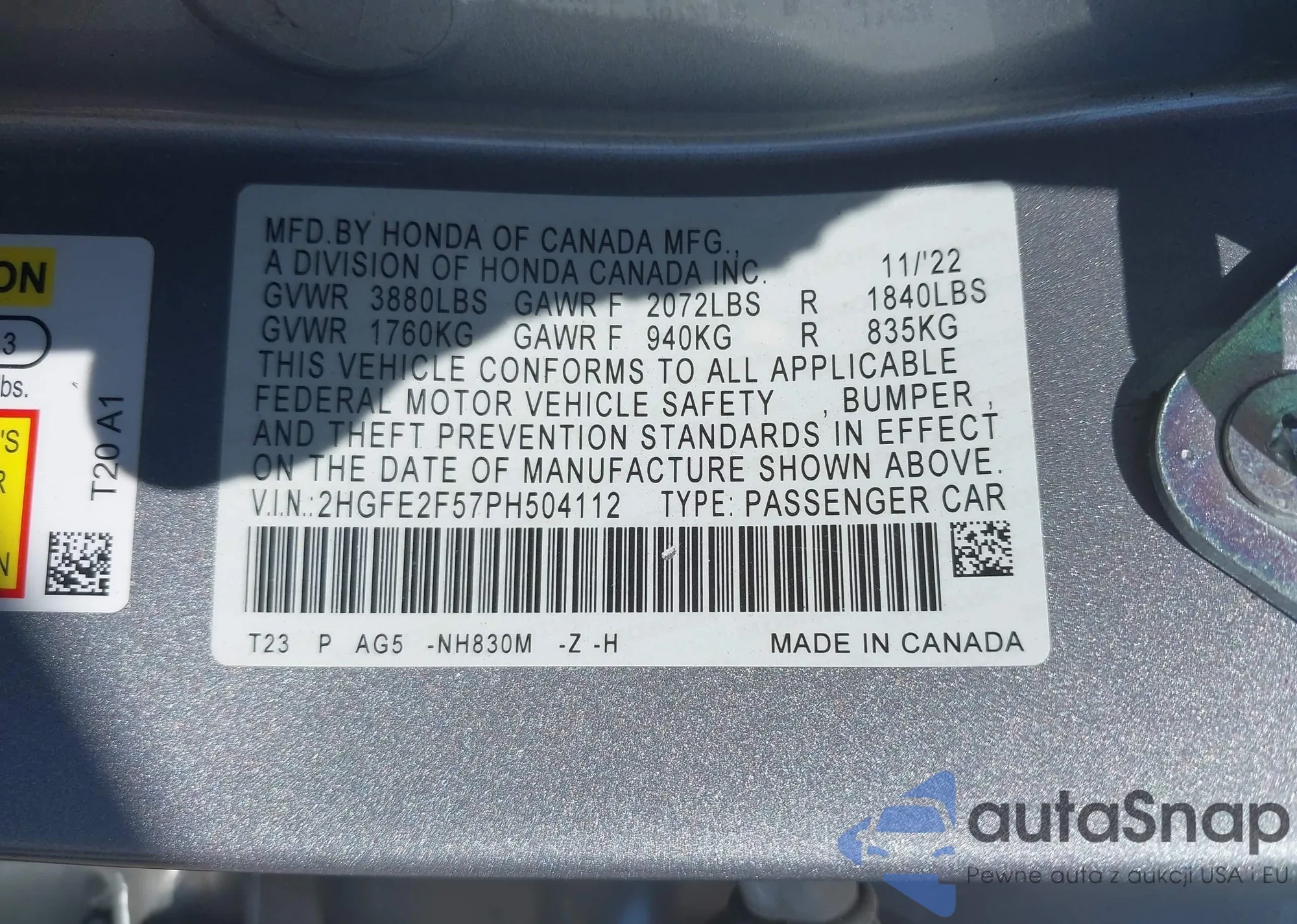 VIN: 2HGFE2F57PH504112