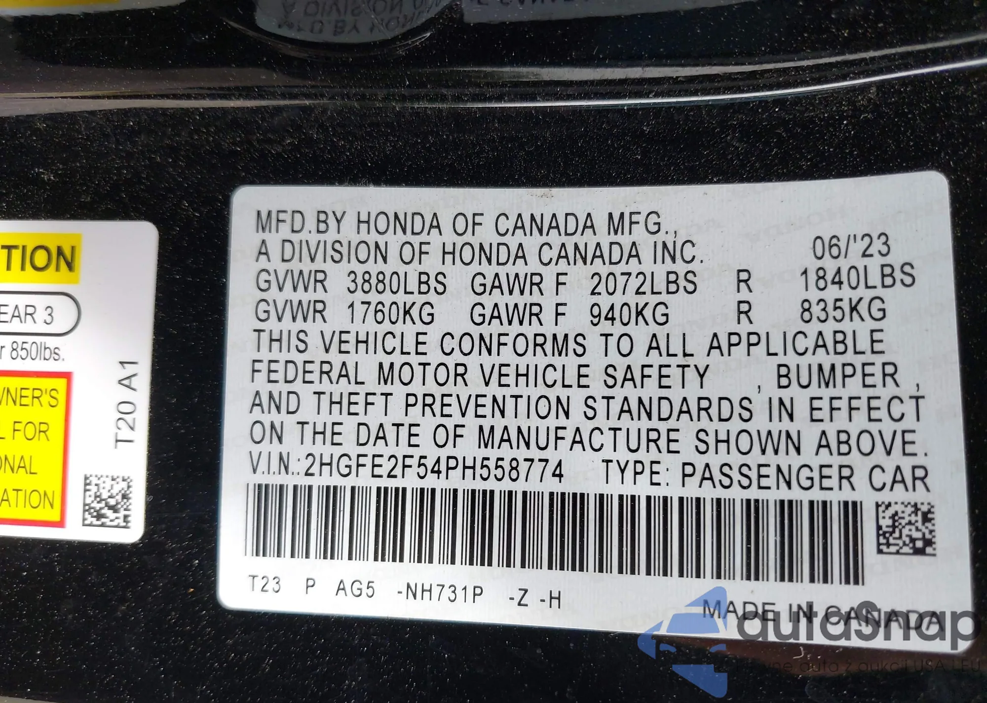 VIN: 2HGFE2F54PH558774