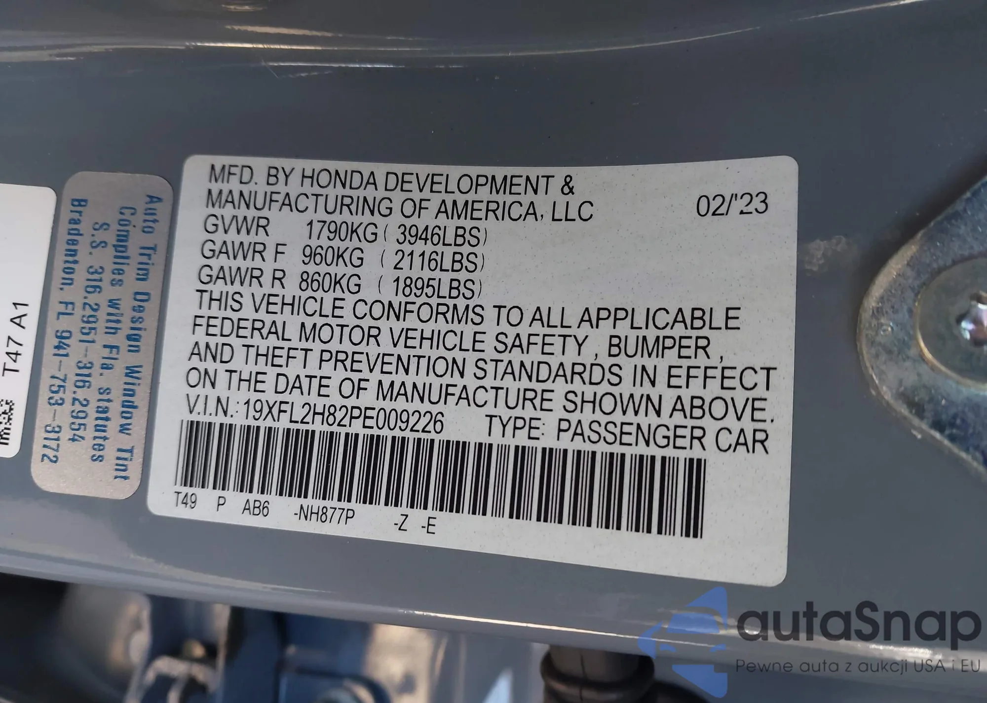 VIN: 19XFL2H82PE009226