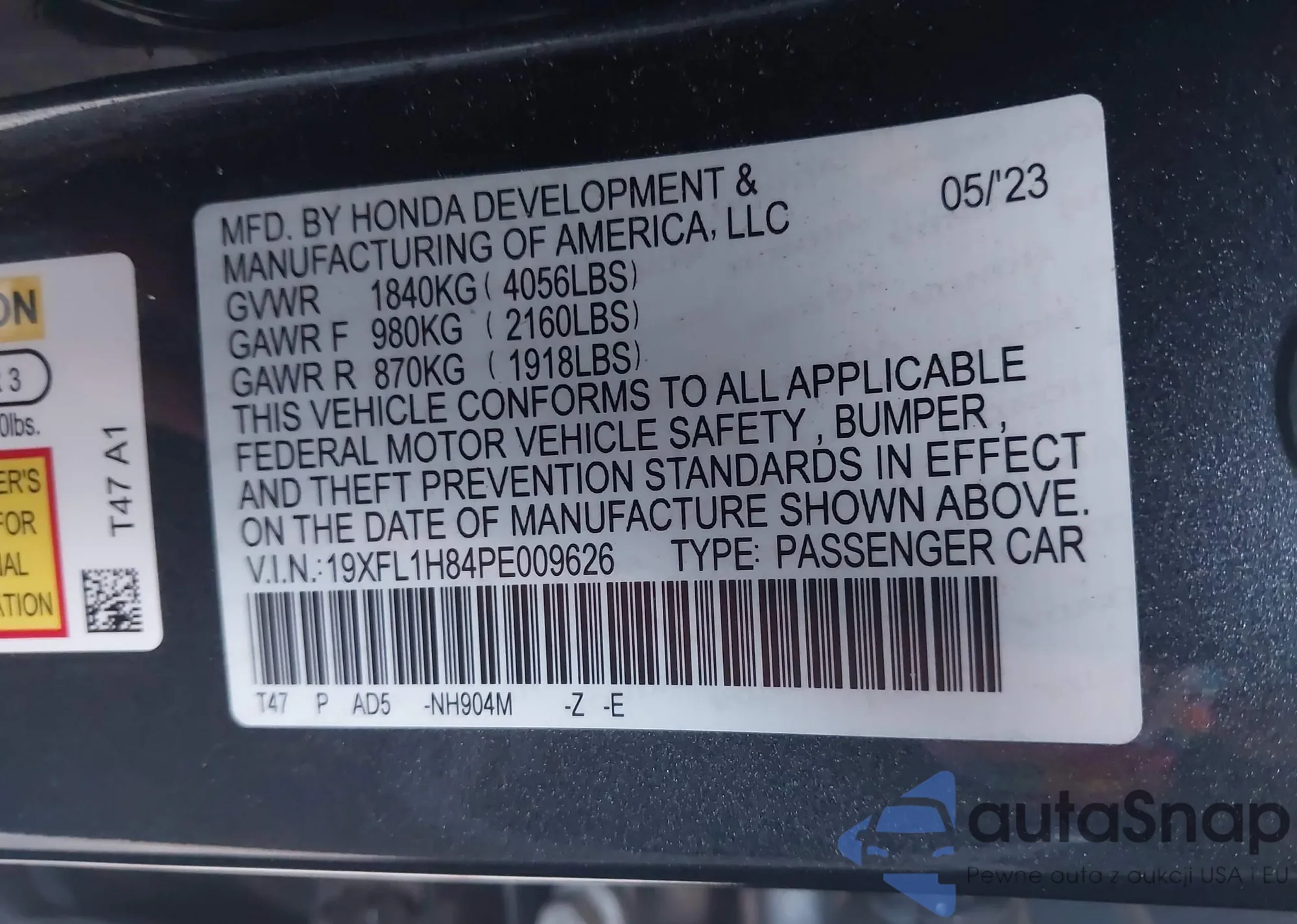 Samochód Honda Civic 2023 (VIN 19XFL1H84PE009626) nie był wcześniej licytowany. Dokumenty są czyste, przebieg odpowiada lub jest niższy niż średnia rynku. Sprzedaje go firma ubezpieczeniowa – polecamy zakup. Dostawa do portu zajmie ok. 6–8 tygodni.