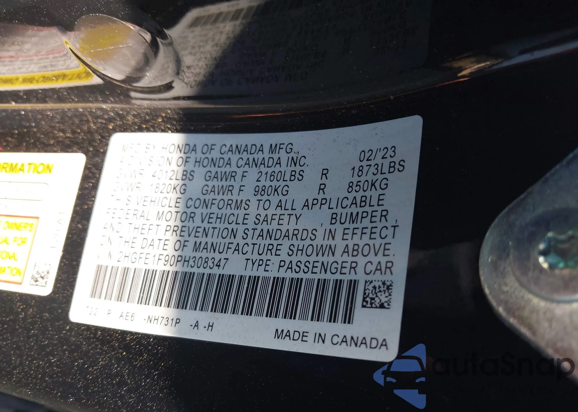 VIN: 2HGFE1F90PH308347