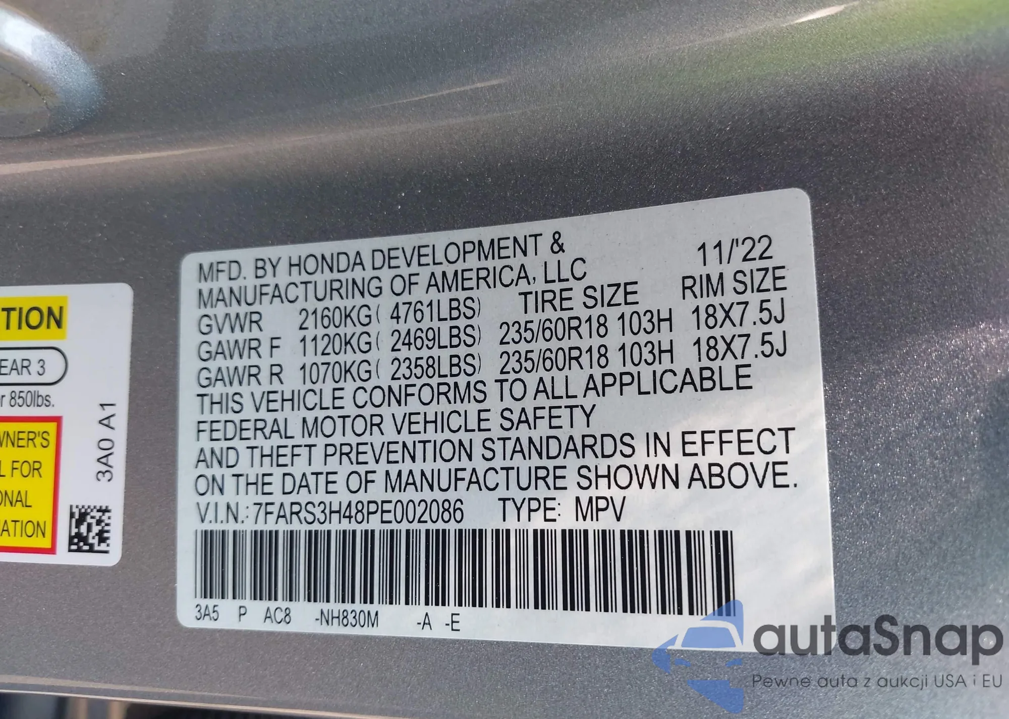 VIN: 7FARS3H48PE002086