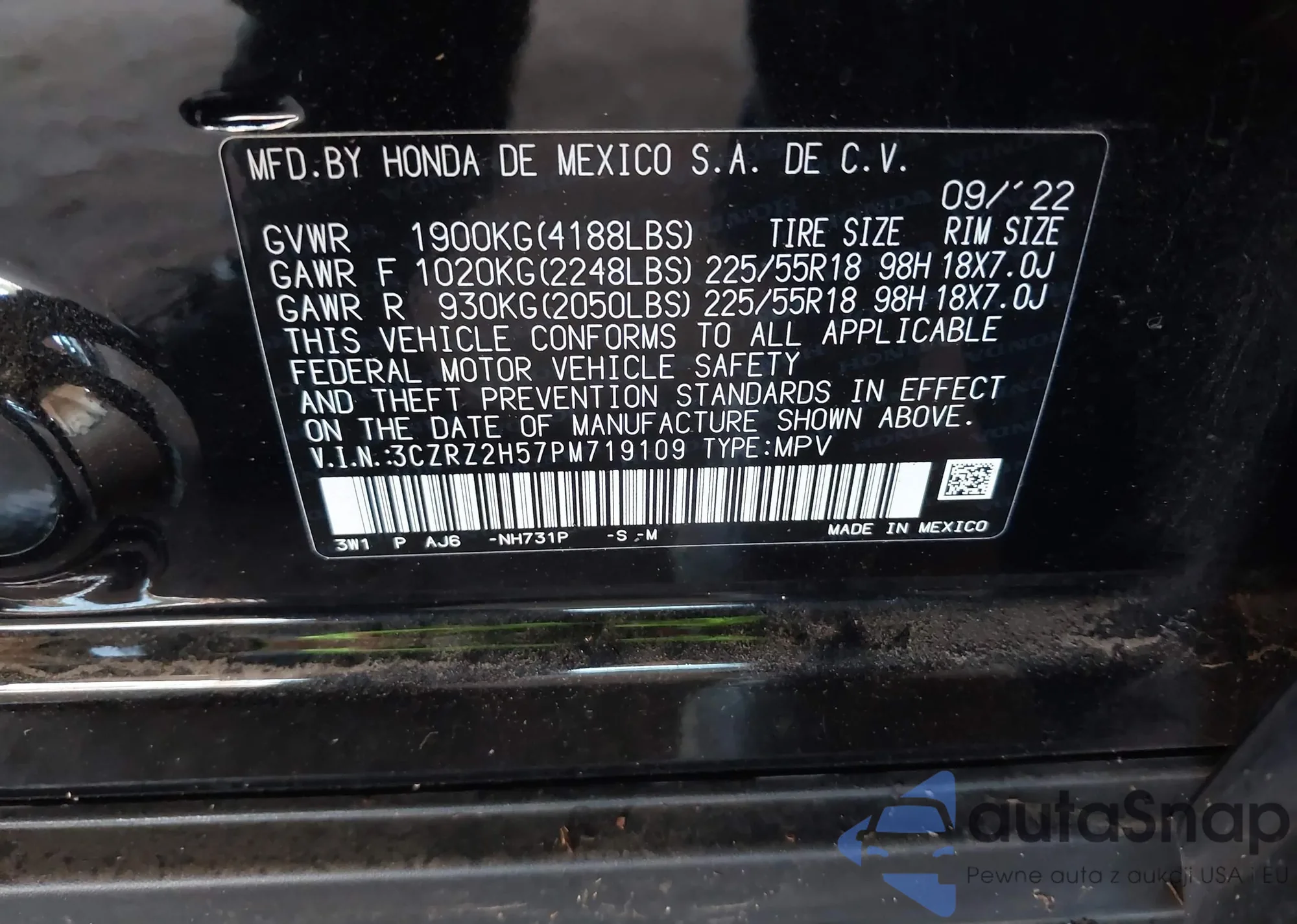 VIN: 3CZRZ2H57PM719109