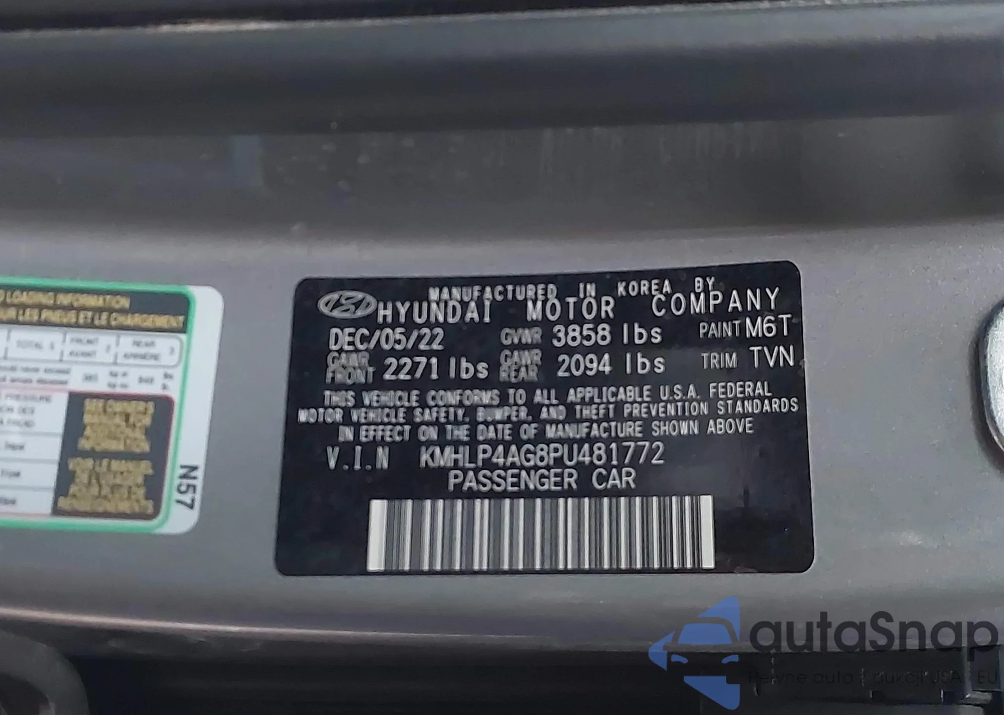 Samochód Hyundai Elantra 2023 (VIN KMHLP4AG8PU481772) nie był wcześniej licytowany. Dokumenty są czyste, przebieg odpowiada lub jest niższy niż średnia rynku. Sprzedaje go firma ubezpieczeniowa – polecamy zakup. Dostawa do portu zajmie ok. 6–8 tygodni.