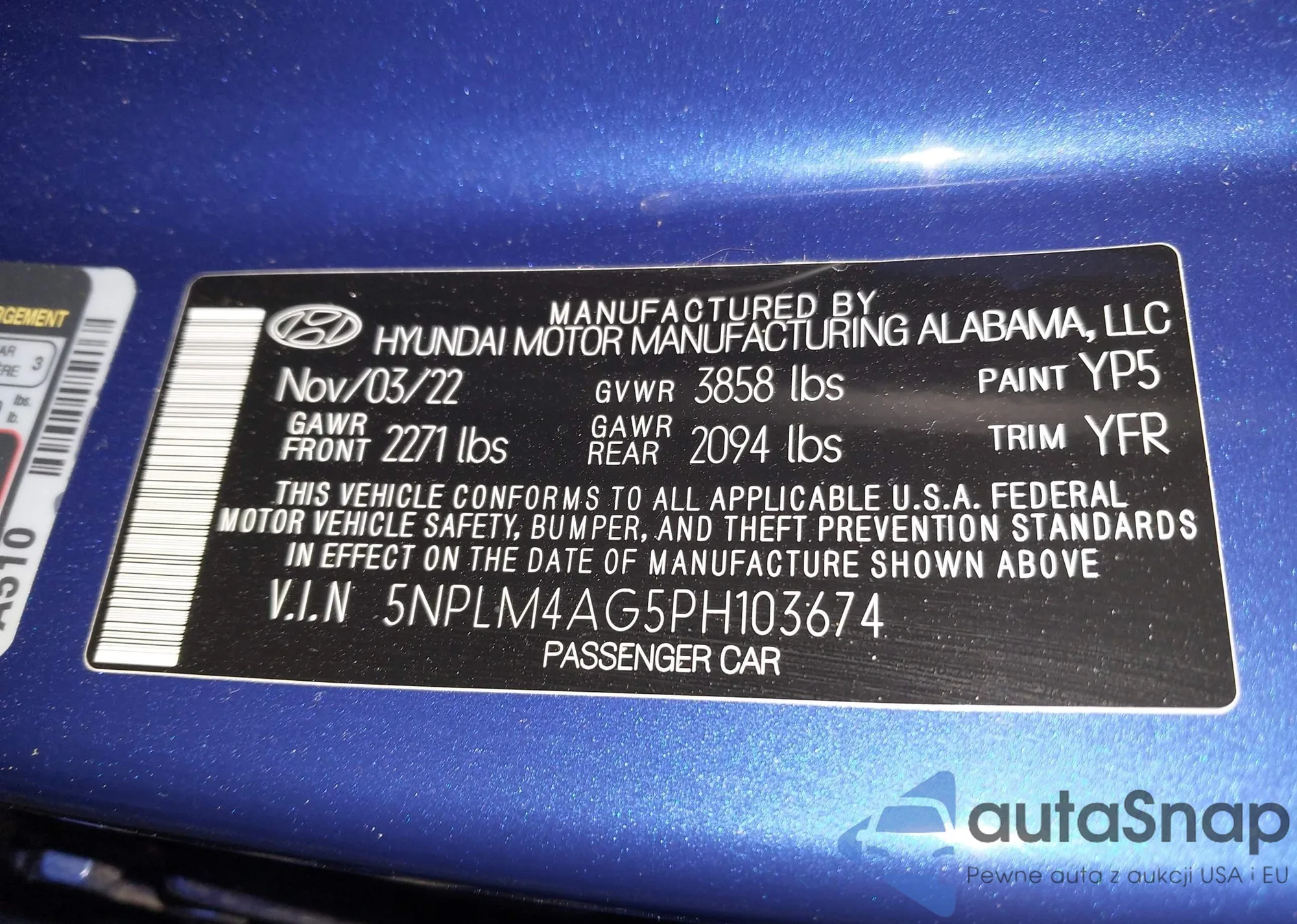 • VIN: 5NPLM4AG5PH103674