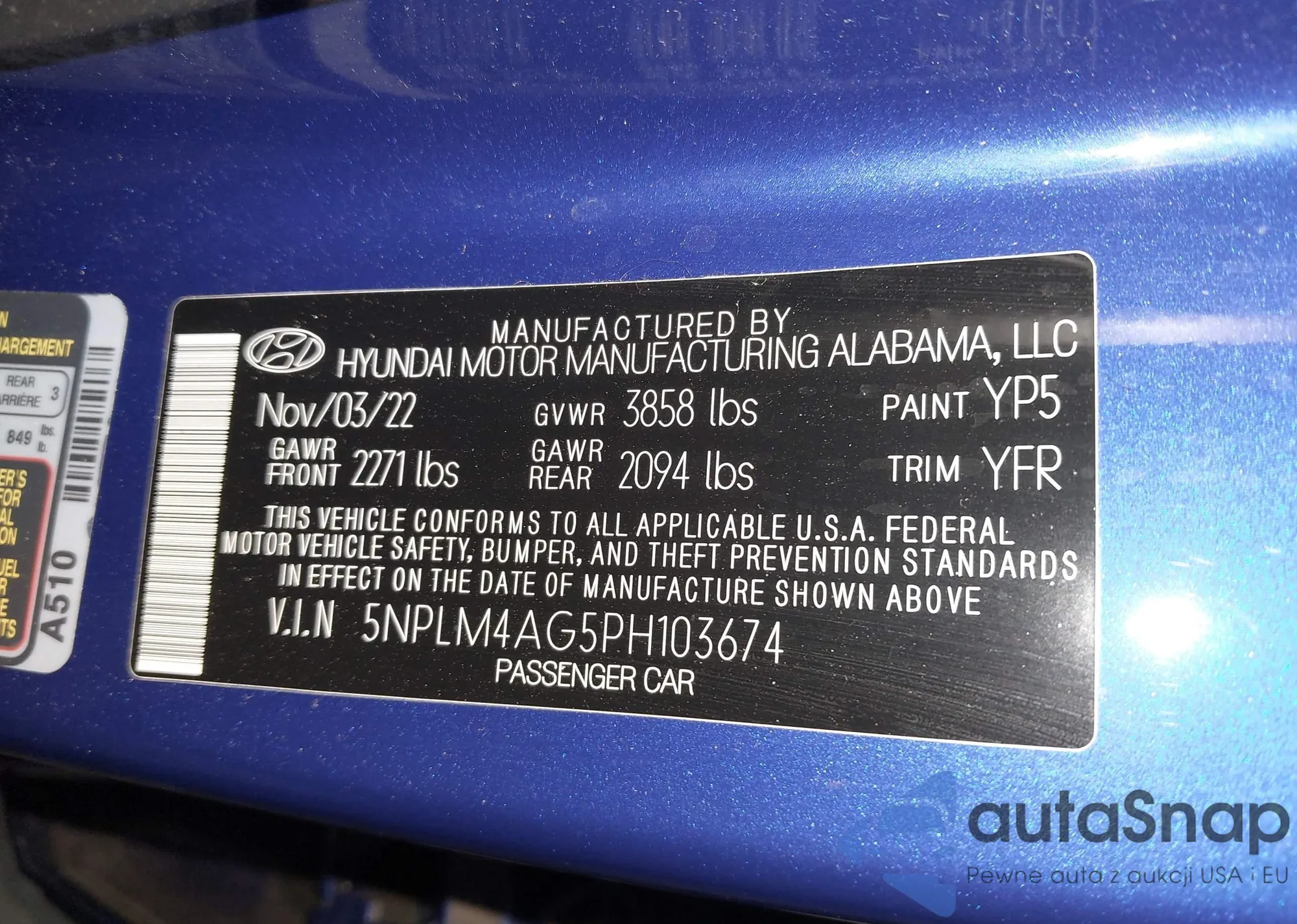 VIN: 5NPLM4AG5PH103674