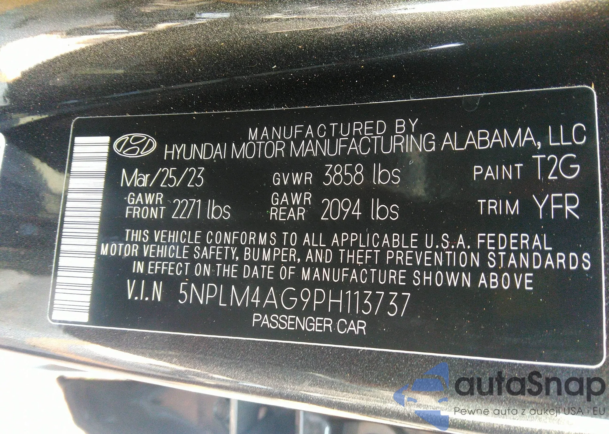 • VIN: 5NPLM4AG9PH113737