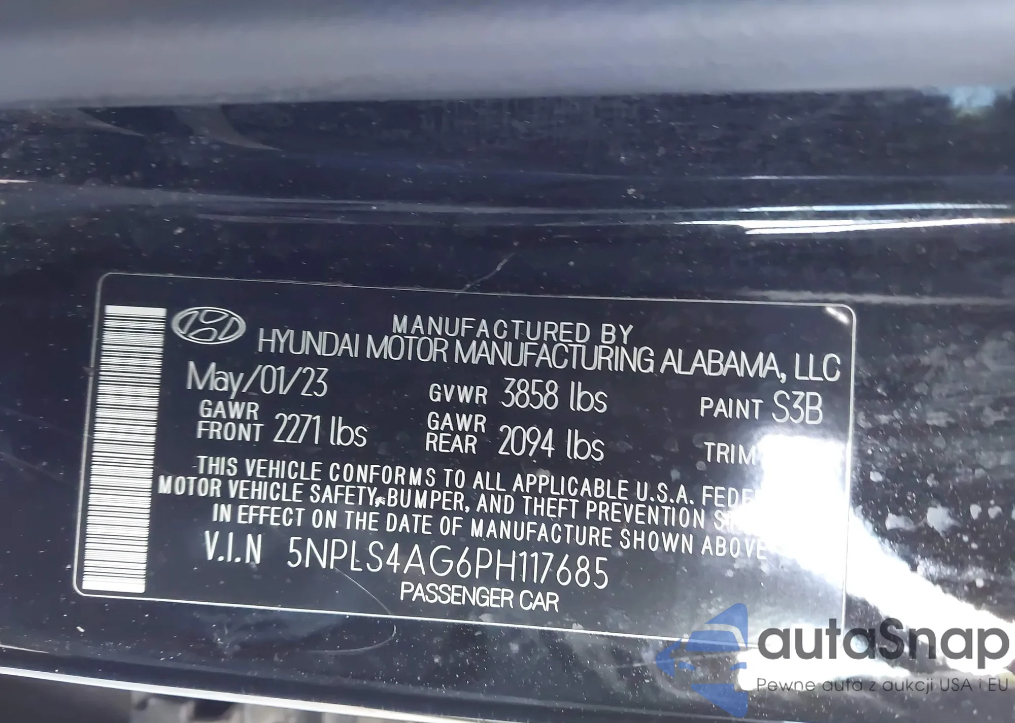 Samochód Hyundai Elantra 2023 (VIN 5NPLS4AG6PH117685) nie był wcześniej licytowany. Dokumenty są czyste, przebieg odpowiada lub jest niższy niż średnia rynku. Sprzedaje go firma ubezpieczeniowa – polecamy zakup. Dostawa do portu zajmie ok. 6–8 tygodni.
