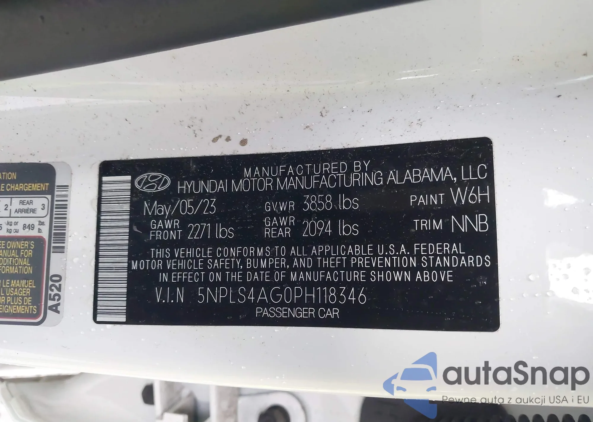Samochód Hyundai Elantra 2023 (VIN 5NPLS4AG0PH118346) ma dokumenty uniemożliwiające rejestrację. Mogą pojawić się trudności przy eksporcie i rejestracji. Skontaktuj się z ekspertami AutaSnap w celu znalezienia alternatywy.