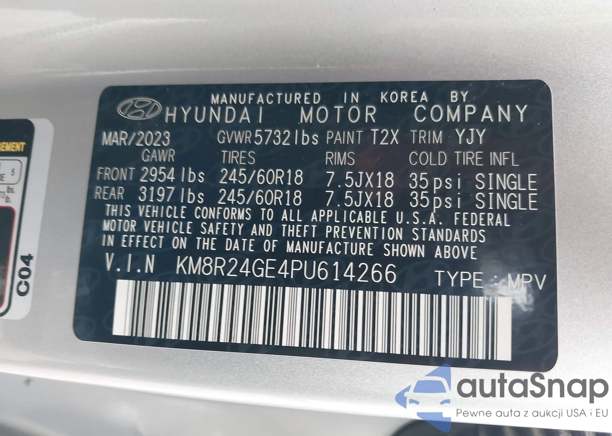 • VIN: KM8R24GE4PU614266